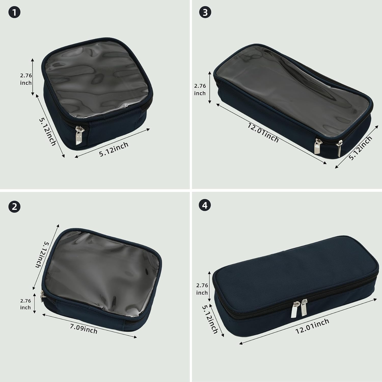 SUITABLE SIZE: Pouch 1( 5.12x 5.12 x 2.76 in), Pouch 2( 7.09x 5.12 x 2.76 in ),Pouch 3:(12.01x 5.12 x 2.76 in),Pouch 4(12.01x 5.12 x 2.76 in), you can put all kinds of small items such as medicines, pills, and other first aid supplies according to your needs
