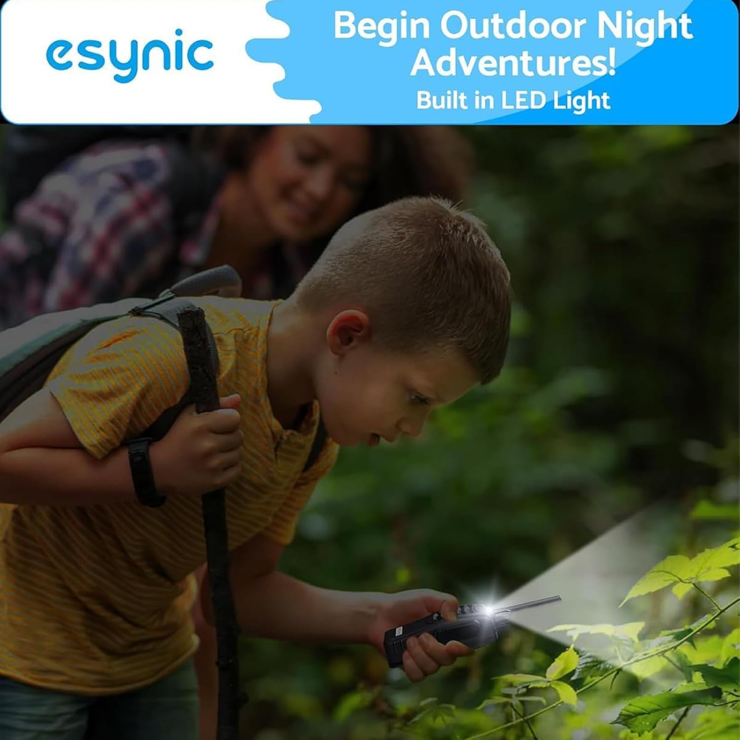 *🔋 12-HOUR BATTERY + FAST CHARGER*—:Our eSynic Rechargeable Walkie Talkies Set With 4 Rechargeable 1500mAh Li-ion Batteries (Last 2x longer than Other Walkie Talky) +Low-battery Alarm + LED Flashlight for Emergencies—Ideal for Camping or Night Shifts.