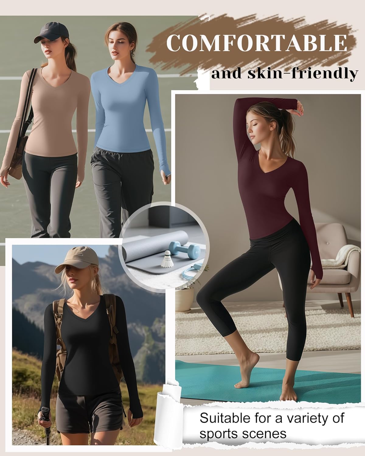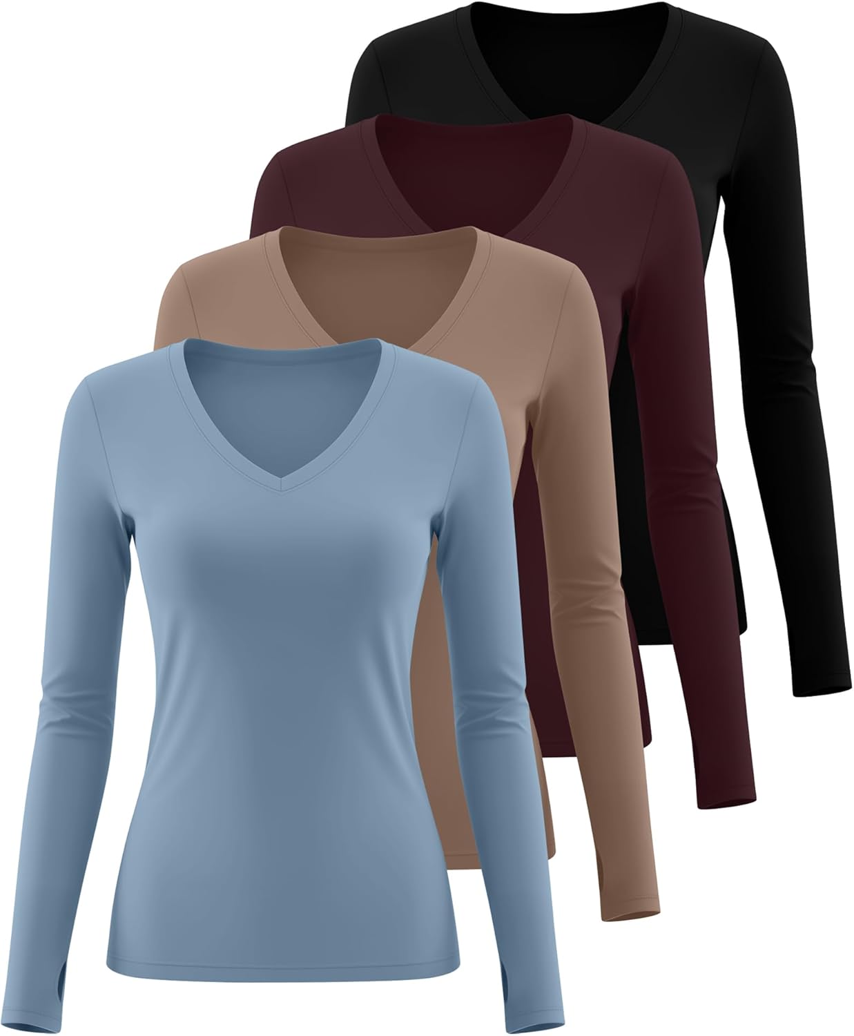 🥾 4 Pack Women’s Compression Yoga Shirts with Thumb Holes Slim Fit Long Sleeve V Neck Tops Workout Gym Athletic Top — Review, Key Features & Current Price