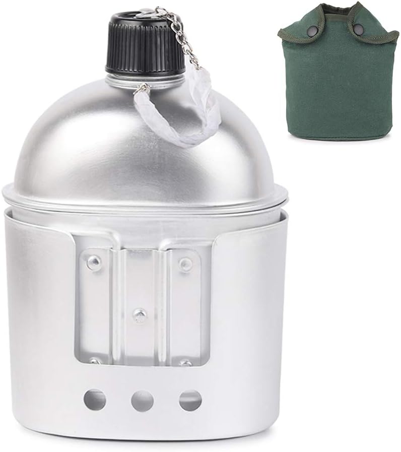 HUIOP Camping cookware Set, 4pcs Cookware Set Aluminum Canteen Cup Wood Stove Set with Foldable Spork and Cover Bag for Camping Hiking Backpacking