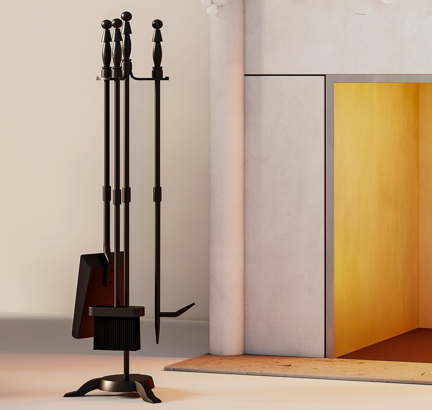 π₯Ύ Fire Beauty Fireplace Tools Set 4 Pieces Black Wrought Iron Fire Tool Set for Outdoor/Indoor Include Poker, Shovel, Brush and Stand Accessories Set β Review, Key Features & Current Price