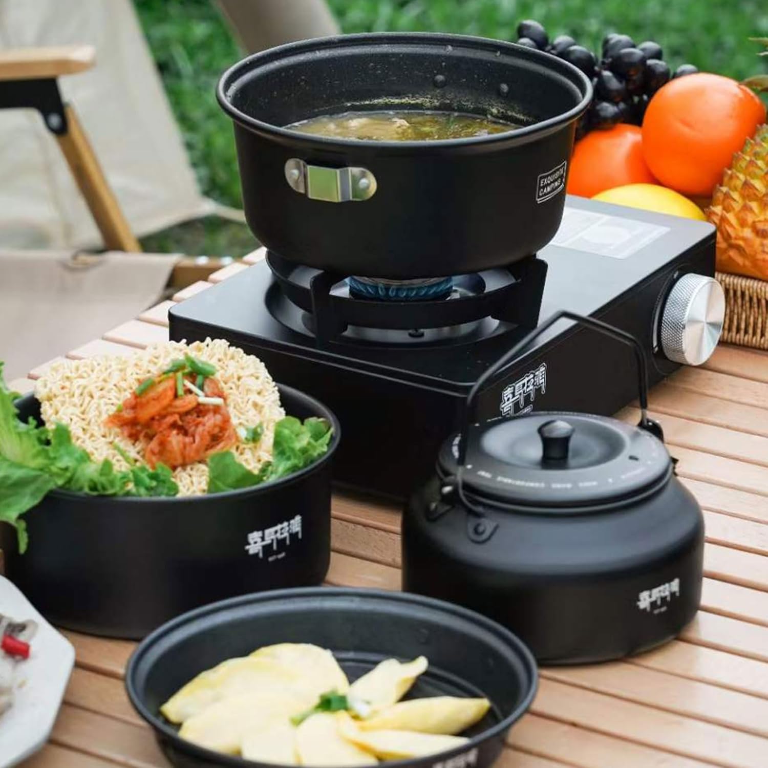 WIDELY USE:This awesome cookware kit is designed for anyone loves outdoor camping with families and friends! It is super-portable, making it much more convenient for camping, hiking, backpacking, picnic and other outdoor activities.Our Camping Cookware Kit can be used in induction cookers, camp fire pit and dishwashers, but are not recommended for microwave and oven heating