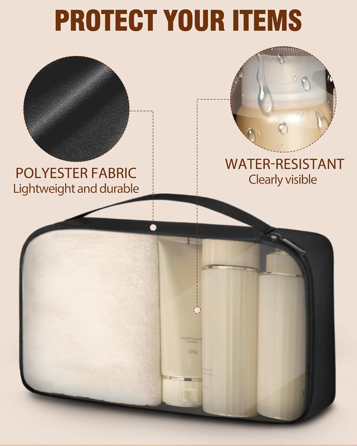 Easy Storage And Classification: The suitcase organizers contain different sizes. A large clear bag for clothes, a small clear bag for toiletries, a large opaque bag for shoes and a small opaque bag for underwear. These storage bags allow you to quickly find what you need without rummaging through a pile of messy clothes