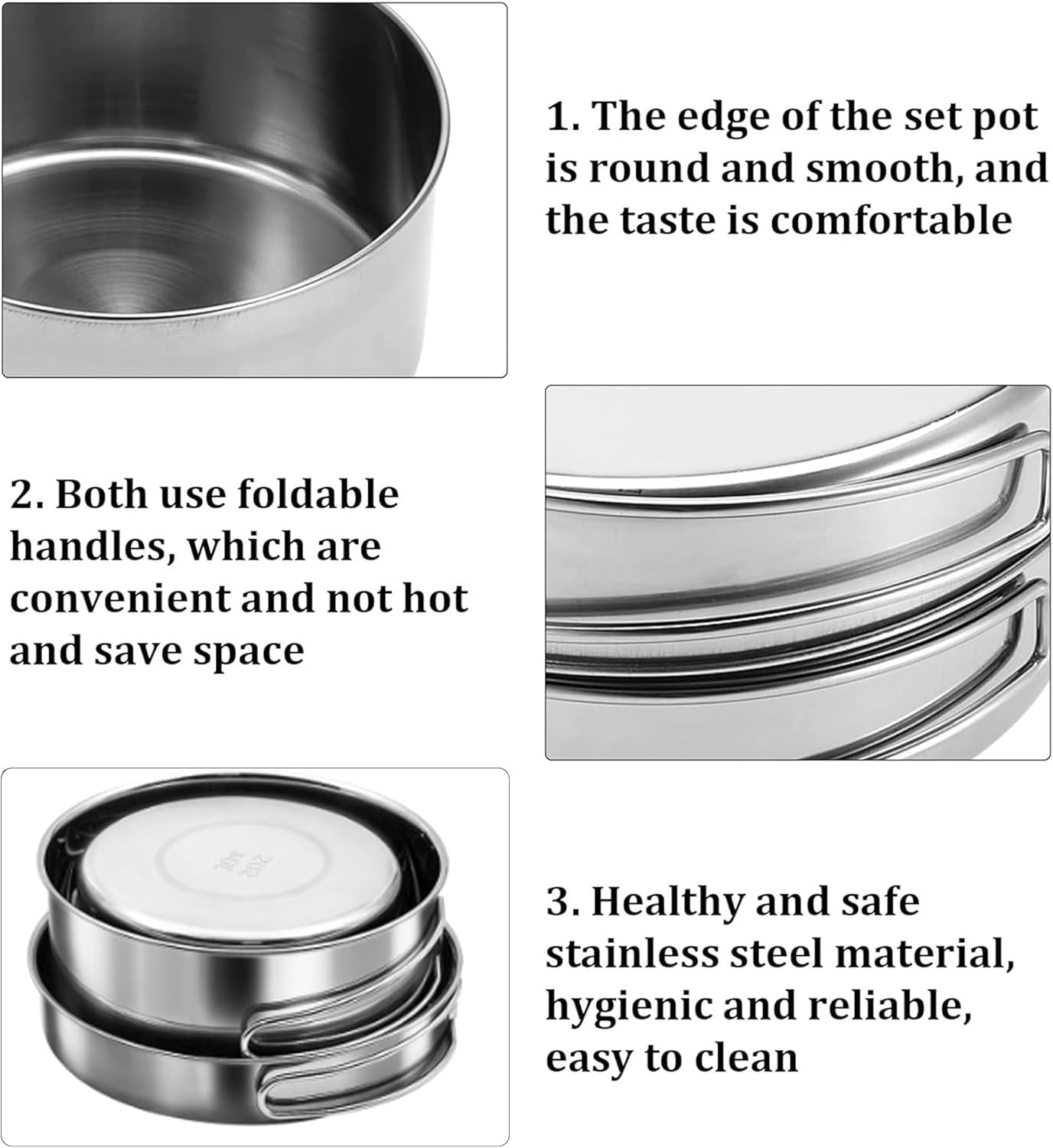 [Space-Saving Foldable Handles & Carry Bag]: The ingeniously foldable stainless steel handles lock securely during use and fold flat. This foldable cookware design, combined with the included carry bag, makes this portable stainless steel cookware set the ultimate backpacking cookware, nesting neatly to save crucial space in your pack.