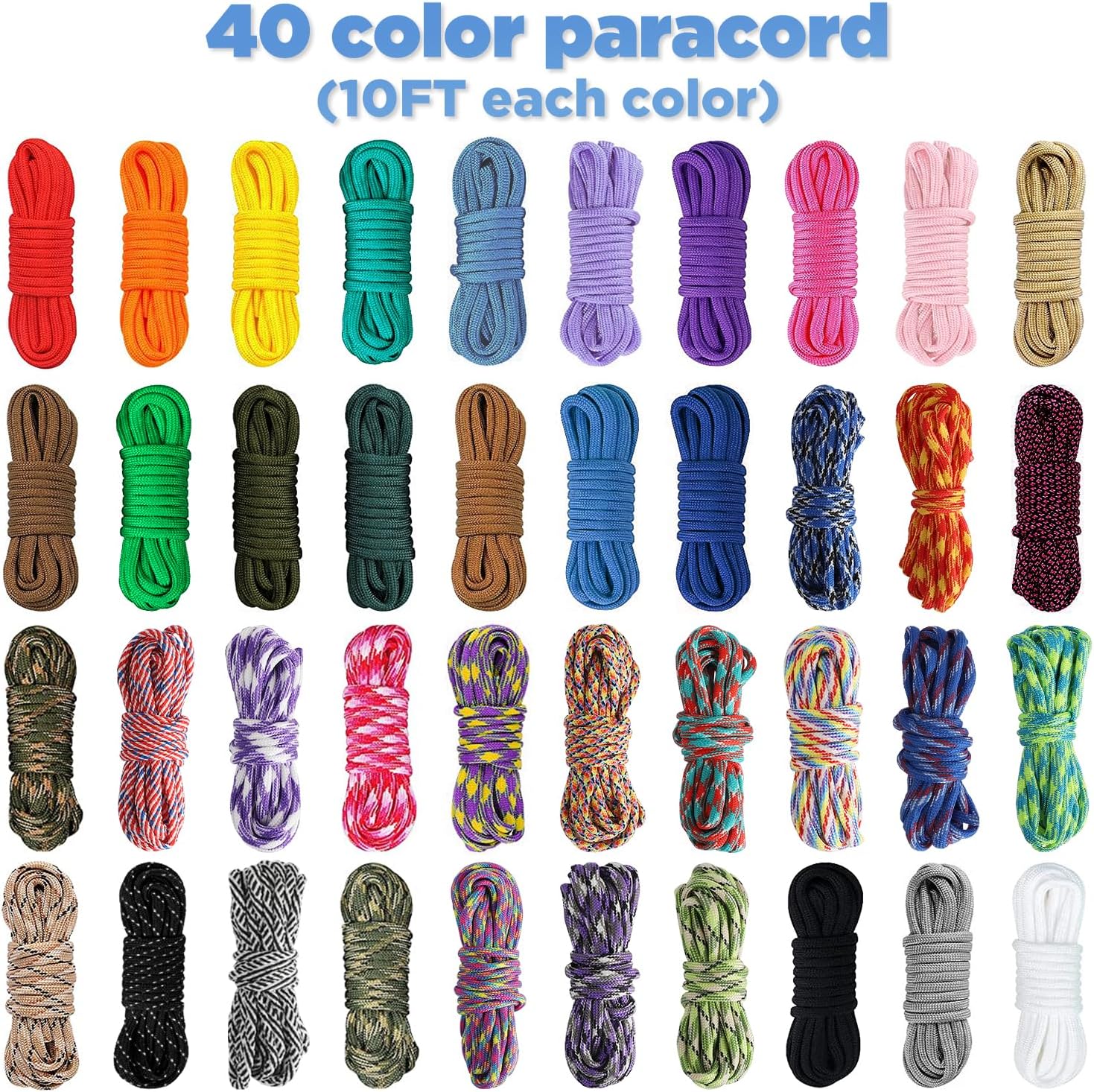 ☀Wide Range Of Uses: You can use paracord kit for craft activities, In leisure time, participate in paracord weaving activities with kids or friends, cultivate hands-on ability, and make paracord projects. Braid paracord bracelets, lanyards, dog collars, necklaces, bag straps, etc. Is also very suitable for outdoor use, used for tent draw rope, strapping equipment, clothes line, fishing, etc.