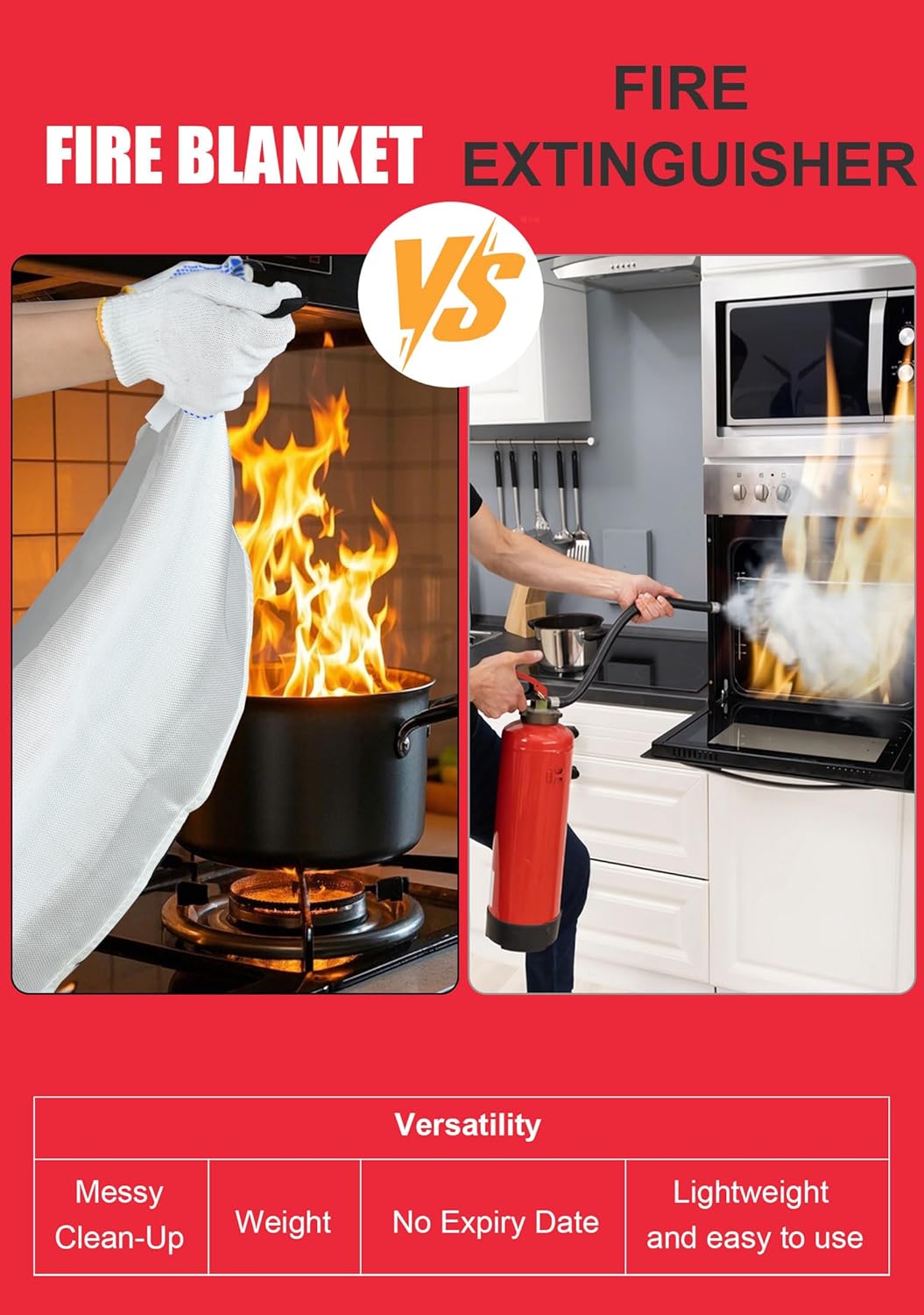 EFFICIENT FIRE BLANKETS: Extinguish small fires quickly and easily with no mess (unlike common fire extinguishers). Simply deploy the blanket by pulling down the tabs. The fire blanket never expires, which means—unlike traditional fire extinguishers—it doesn’t need to be replaced