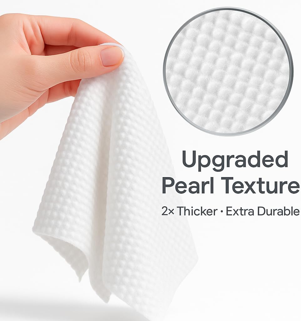 Upgraded Pearl Texture for Better Absorption Made with enhanced pearl-textured plant fiber, these compressed towels absorb water more effectively and feel thicker and more structured than standard smooth towel tablets.