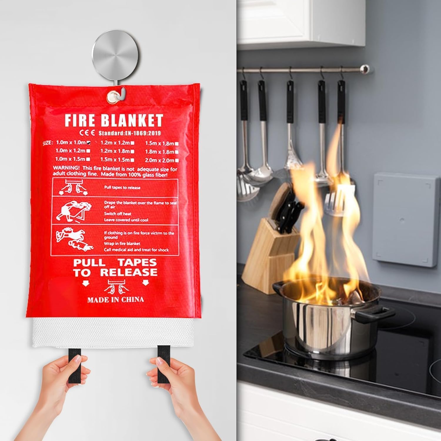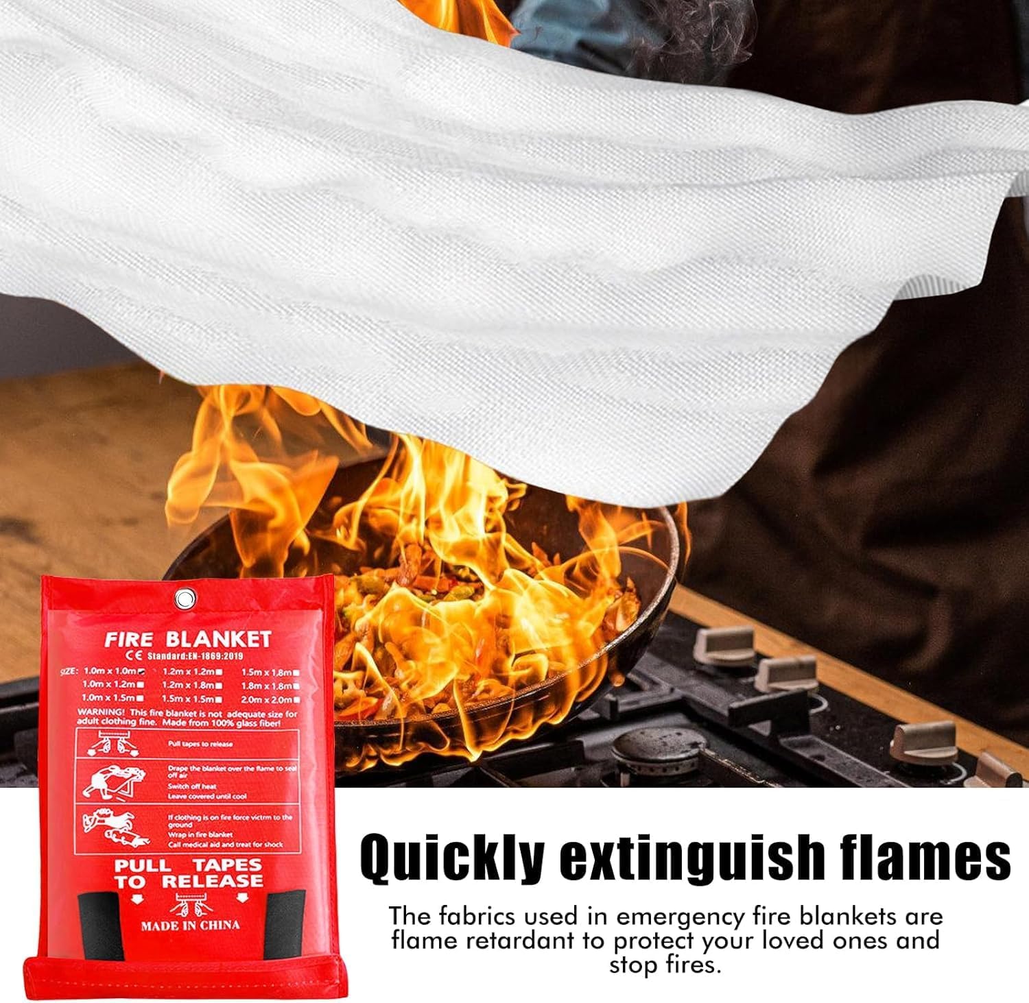 Fire blankets emergency for home, fire extinguisher for home, survival kit, smoke detector, easy to fold, using fiberglass folding weaving technology.