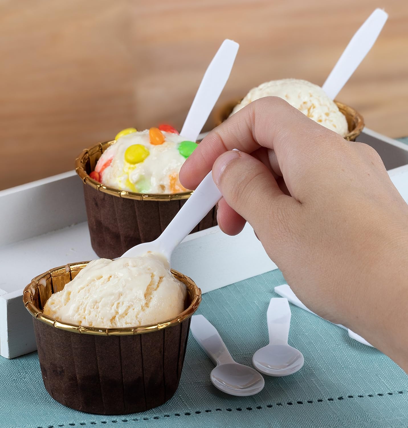 ✅ Classic White Design: Complements any occasion, from casual to formal settings. These mini spoons are perfect for ice cream, yogurt, or jello shots, adding elegance to your presentations.