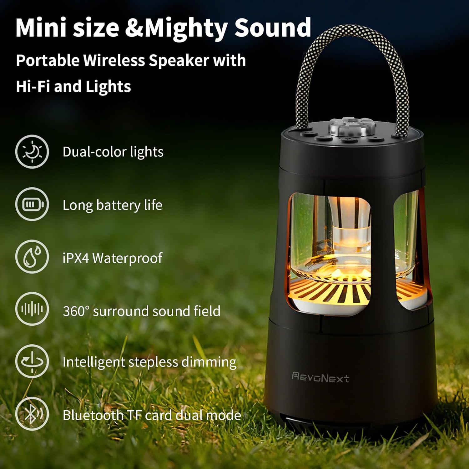 Tech Specs: – Rated Power 10W |Driver 2.25’’ 4Ω – Frequency Response 90dB+ | S/N Ratio ≥80dB – Battery 4000mAh | Playtime Up to 12H – Charging Time 3.5H | IPX4 Waterproof | 10W Bluetooth speaker with an Adjustable light (cool/warm tones + brightness control),Compatibility iOS/Android/PC