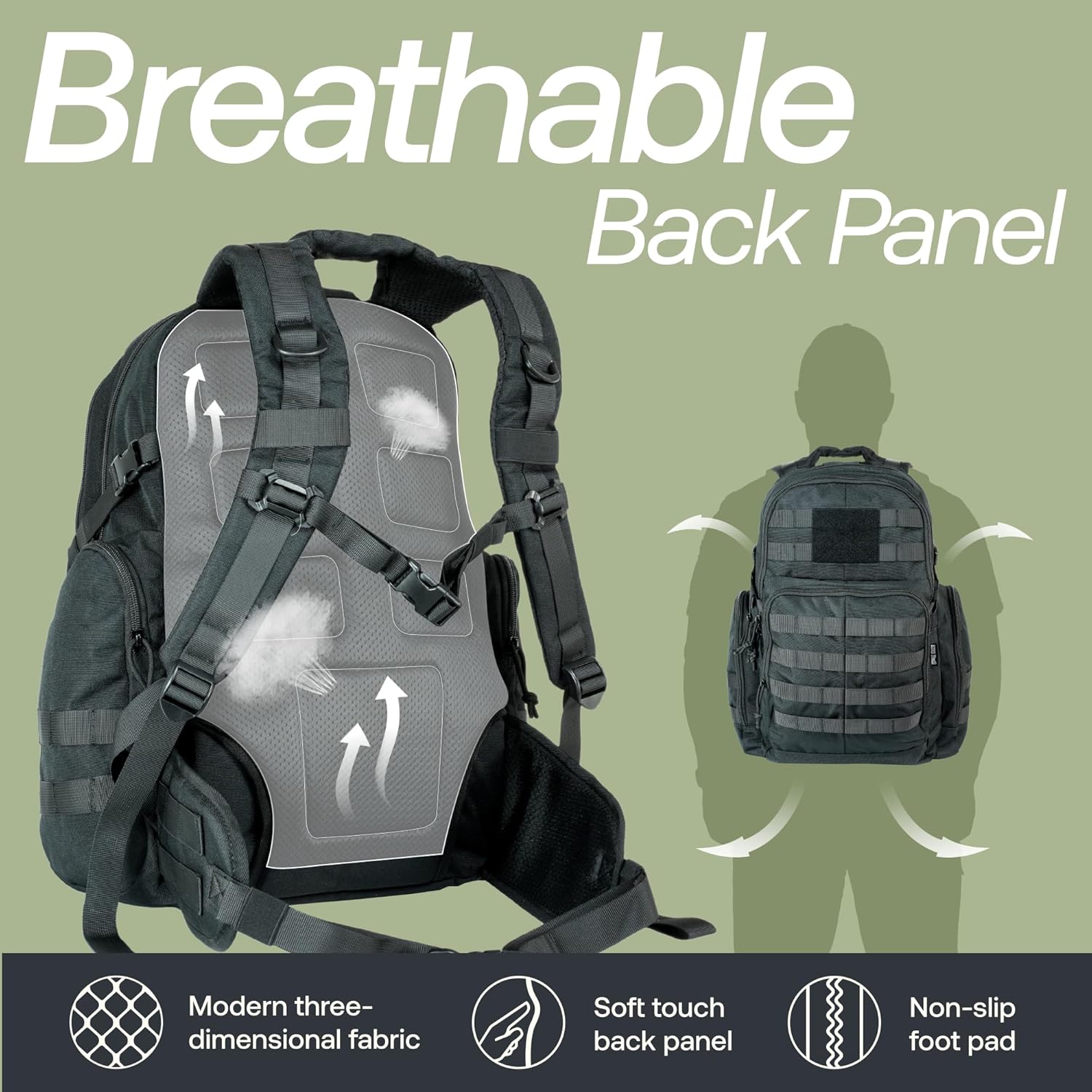 Adjustable and Comfortable: Padded shoulder straps, compression chest straps, and a hip belt offer a comfortable fit for all body shapes, ensuring convenience during long-distance trips with the backpacks tactical.