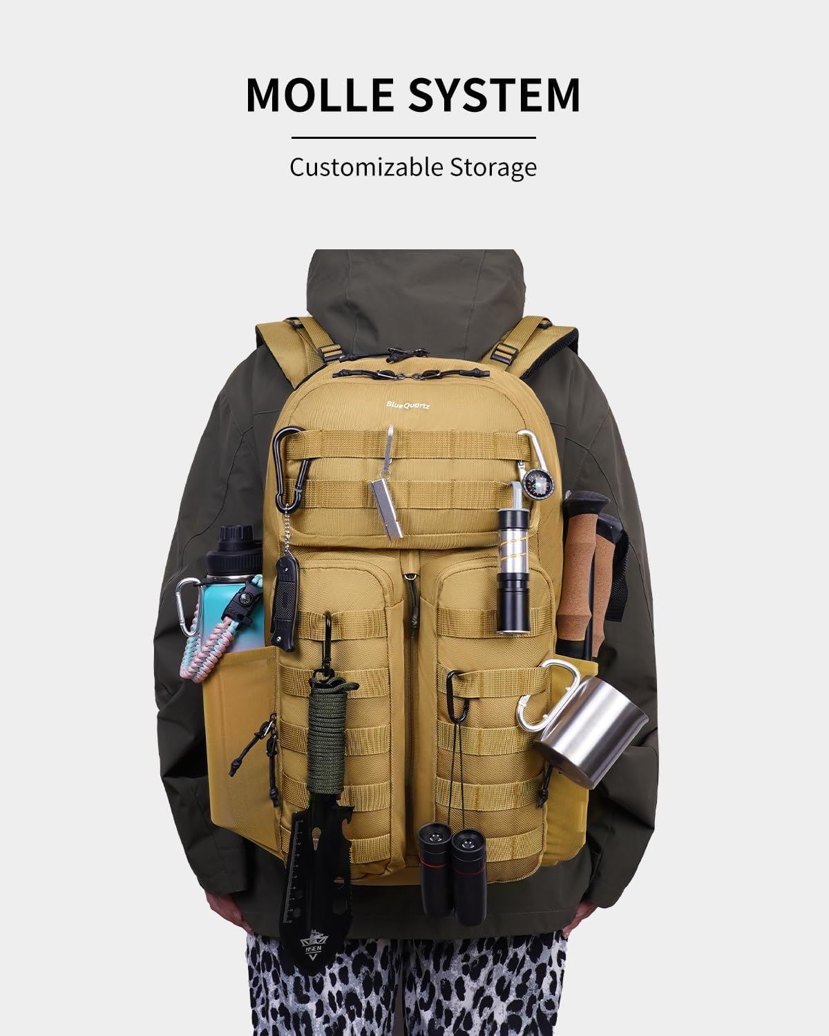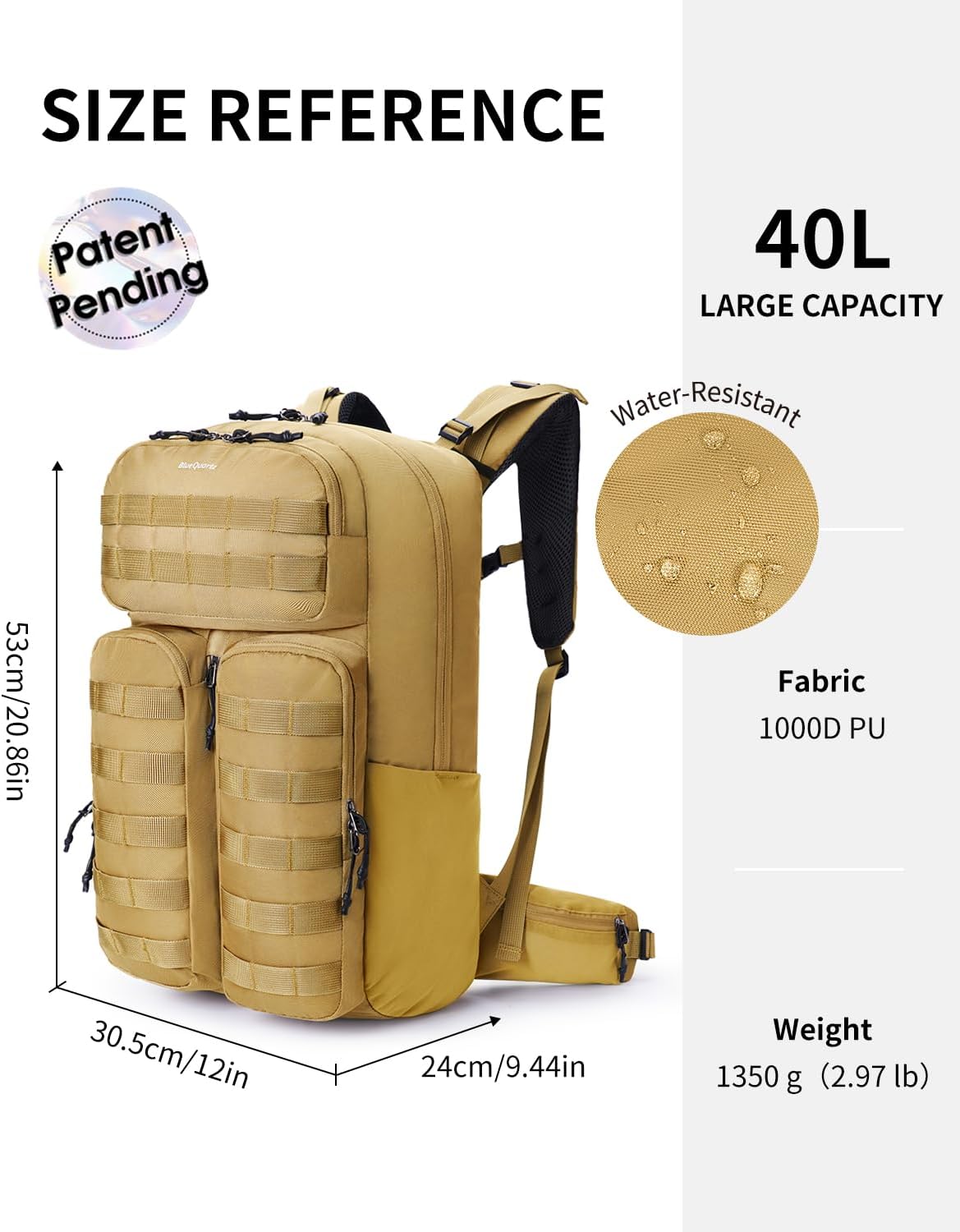 【Compact 40L for Short Adventures】:With a 40L capacity, this backpack is ideal for 1–2 day hikes, offering generous storage without excess bulk. Whether you’re exploring national parks, preparing for tactical outings, or heading out for a weekend trek, this pack balances portability with function. Use it as a hiking backpack, camping backpack, backpacking backpack, military tactical Backpack, mountaineering backpack, travel backpack, bug out bag, survival backpack, or day pack for daily use