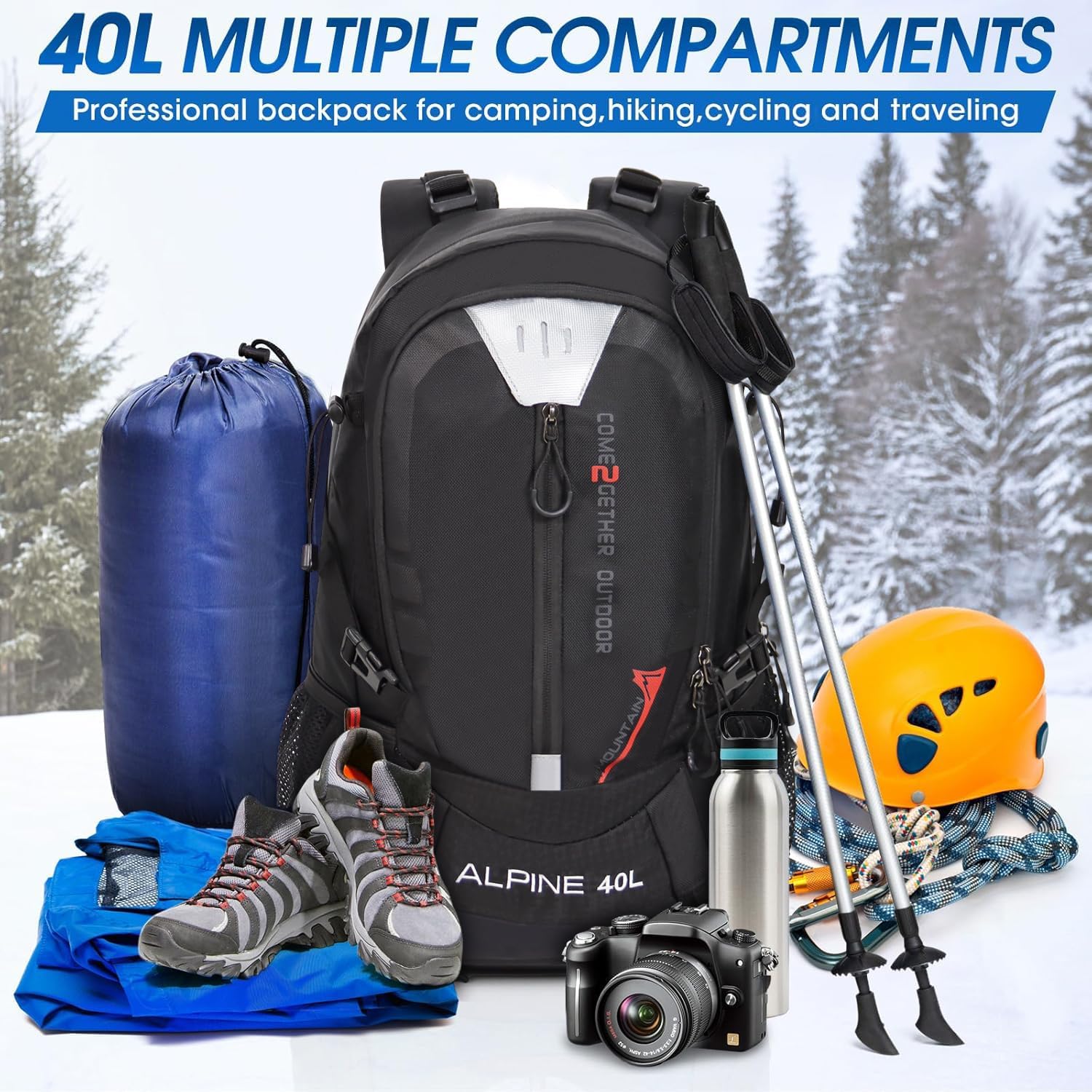 Lightweight — Easy to carry: The 40L outdoor hiking backpack is lightweight and it’s breathable mesh shoulder straps with plentiful sponge padding help to relieve the stress from your shoulder. The large capacity of 40L provides enough space for outdoor travel, camping, hiking and fishing. It meet size requirements for most airlines. This camping backpack can be used as hiking backpack, travel bags and business bag, which is suitable for men and women.