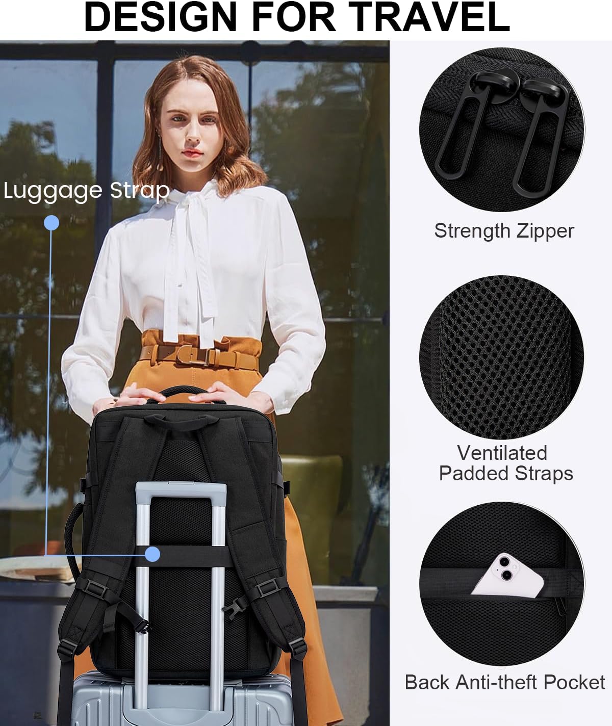 【Sturdy & Comfortable】This large carry on backpack for men is tear-resistant, water-repellent and ultra-durable for all trips. It also functions perfectly as a protective laptop backpack for men. Designed with breathable padded cushions and adjustable shoulder straps, it stays ultra-comfortable even during long hauls. Plus, smooth zippers and a thick, breathable padded back panel effectively ease shoulder fatigue, whether you’re on a long journey or short trip