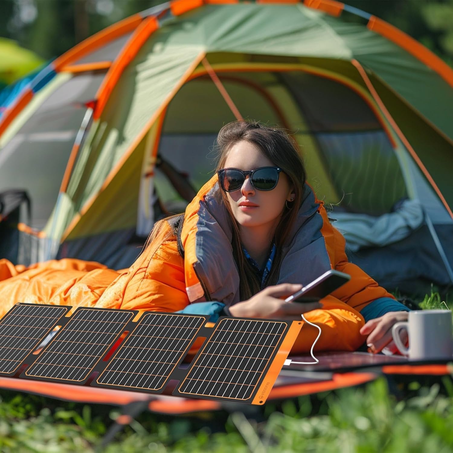 Off-grid energy to power your equipment with maximum efficiency, conversion up to 24%. Lightweight & Foldable, perfect for outdoor.With USB-A & USB-C port, compatible with cellphone, tablet, laptop, power bank, mini fan, etc. And it can charge multiple portable devices at the same time.