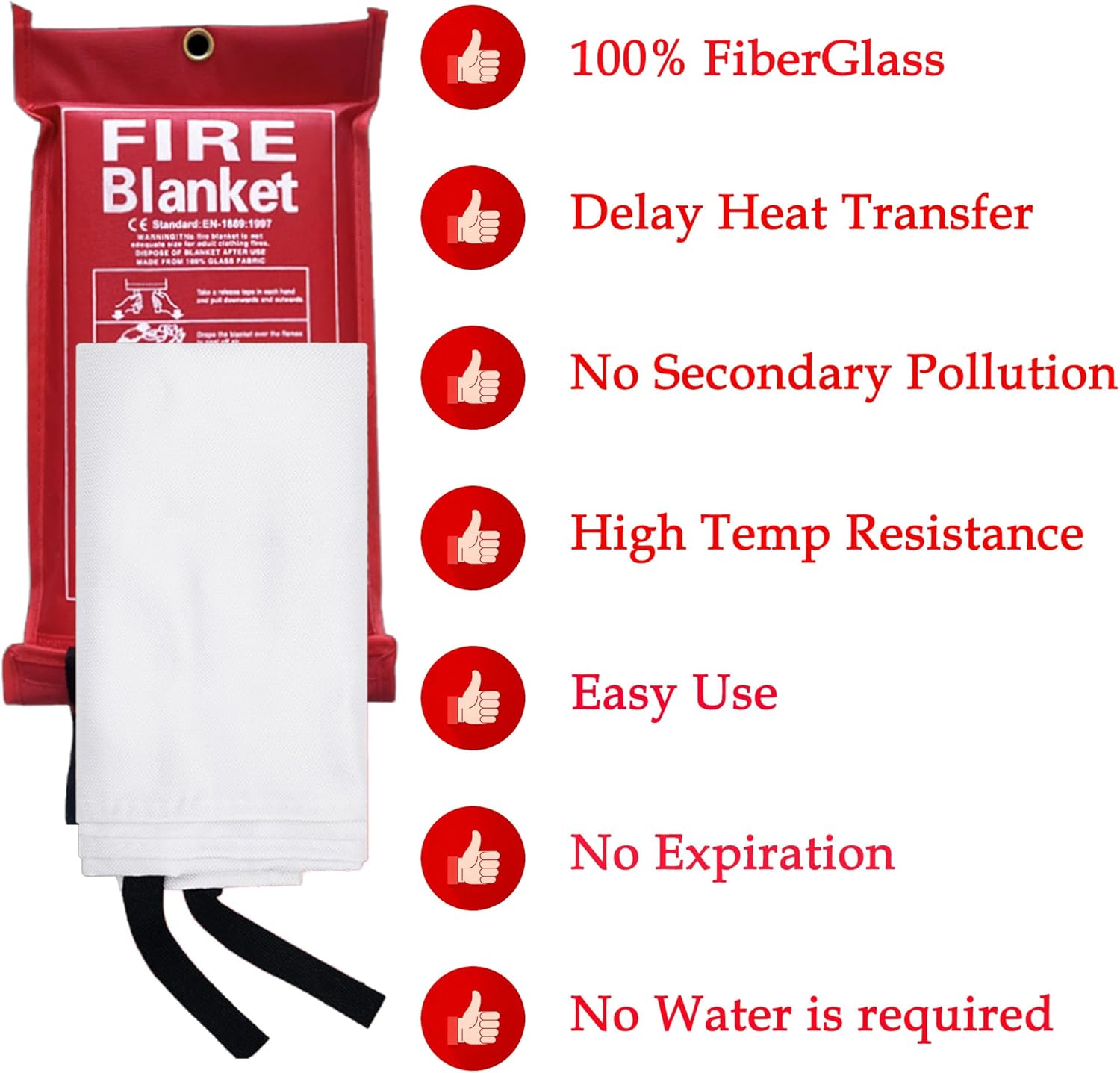 【 Compact & Long-Lasting】This emergency fire blanket is easy to store, requires no maintenance, and never expires, making it a reliable choice for fire safety.