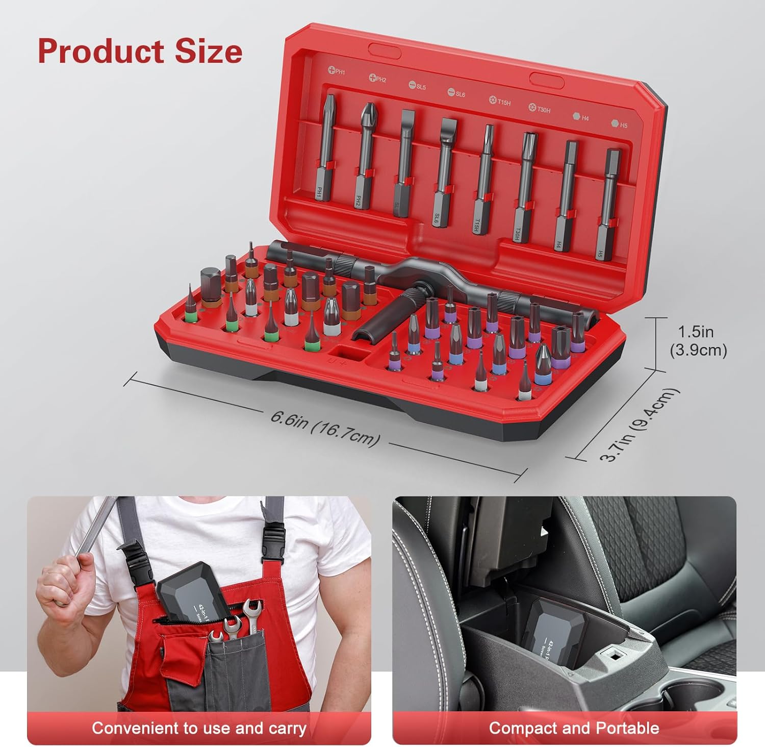 Strong Magnetic & Easy Identification – Features a magnetic handle for secure bit placement and a convenient magnetic slot within the case to recharge the bits’ magnetism as needed. Color-coded bit rings ensure quick and easy identification, improving work efficiency and simplifying organization. This magnetic screwdriver set effectively tackles various tasks, including home appliance repairs, home furniture repairs, and automotive maintenance.