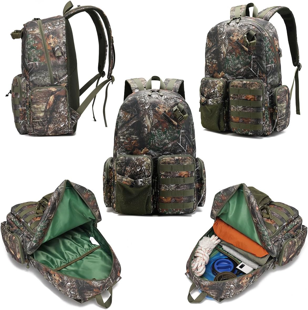 Tactical MOLLE Expansion System—MOLLE webbing attaches pouches/holsters; maximizes storage for hunting essentials and accessories.