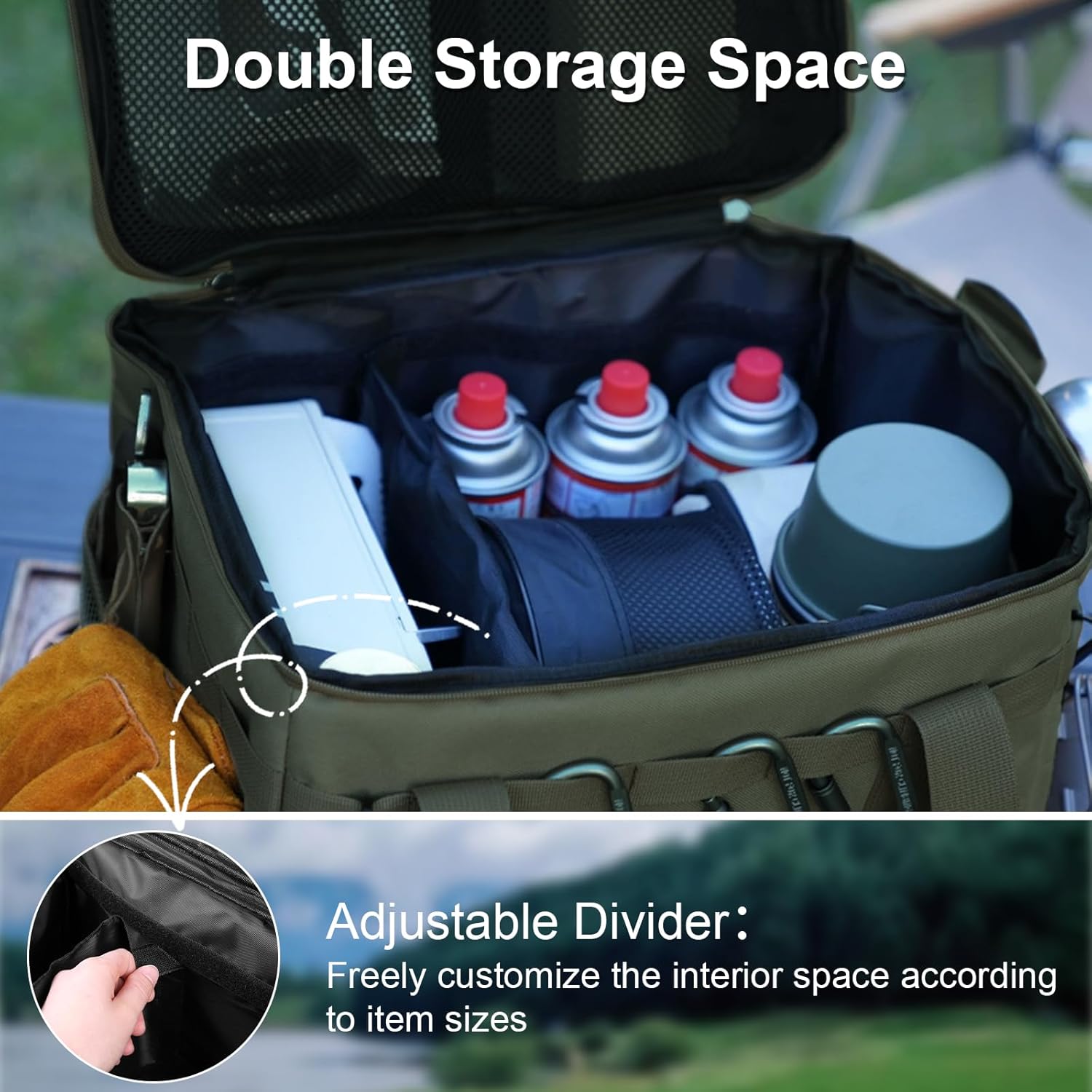 【Durable & Wear- Material】Our tactical camping storage bag is made of high-density 600D Oxford cloth, which is durable and to a variety of outdoor conditions, making it durable and durable.