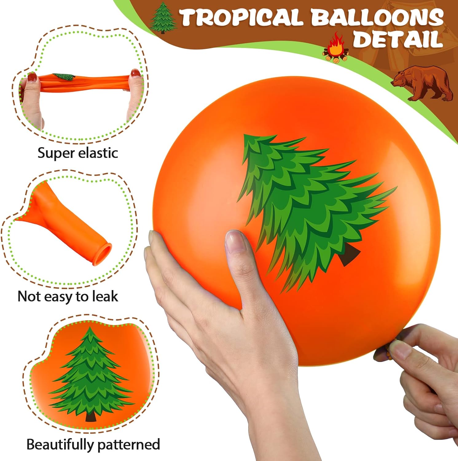 Package Included: the camp balloons contains 45 balloons; The balloons come in white, green, red, orange and brown, with 5 of each color; At the same time we also provide you with two rolls of ribbon, the color of the ribbon is green and brown, each roll is 10 meters long, easy to hang and decorate; Party balloons decorations kit contains many things you’ll need for a small camping party