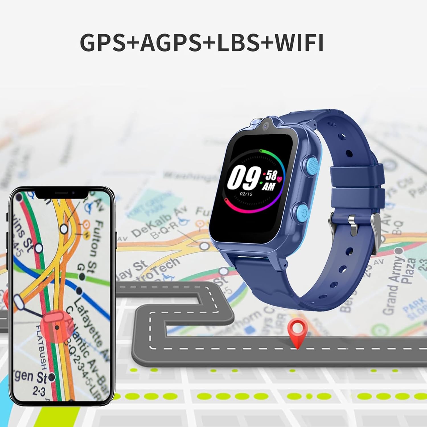 GPS Tracker SOS: Kids Phone Smartwatch with 4G WIFI GPS real-time positioning also can check location history through the day, know where your kids are anytime.When the child is in danger, press and hold the SOS button for three seconds, watches for kids will automatically call and send information to the preset three phone numbers, which is very helpful to the child in an emergency