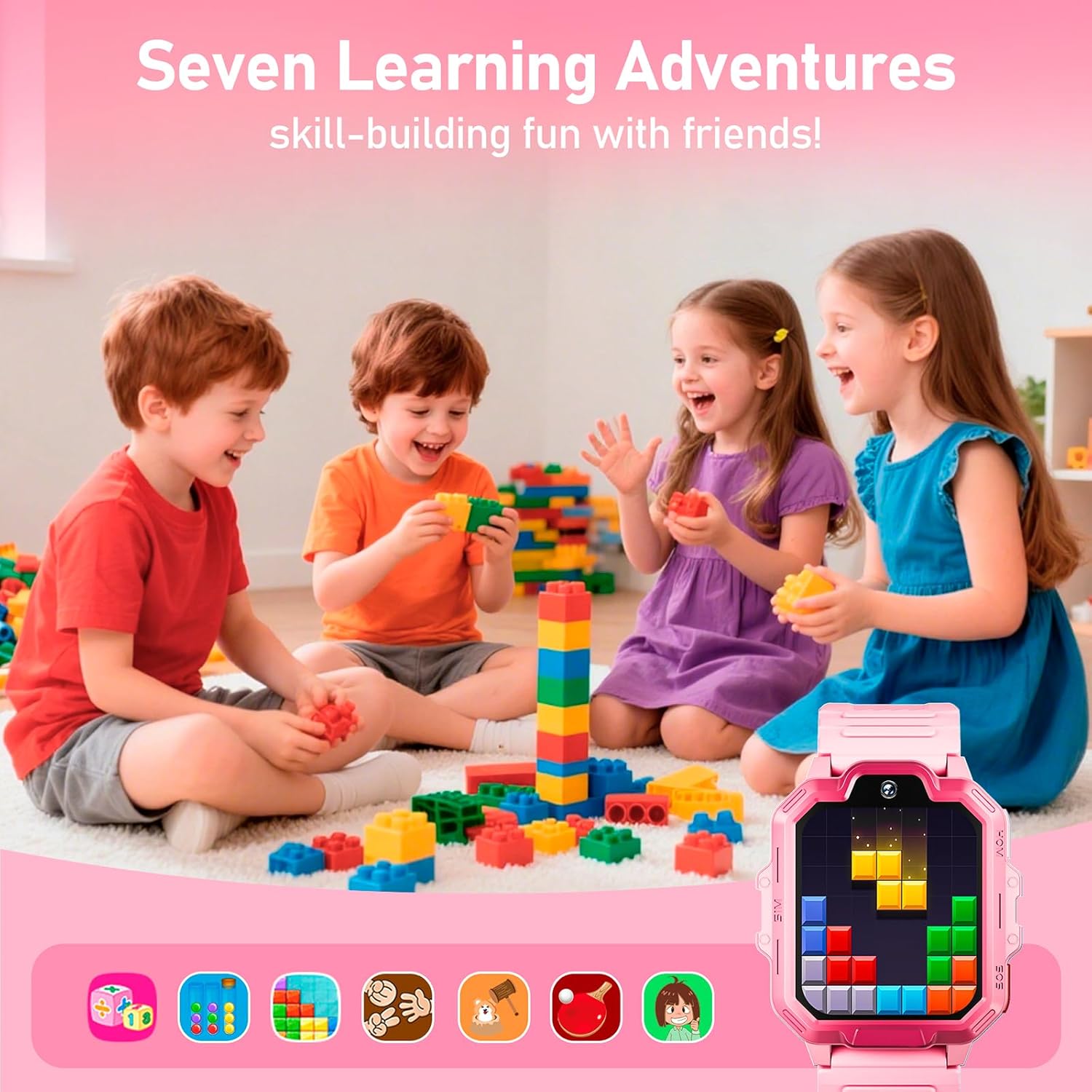 【School Mode & Interactive Learning】- Focus during class! School Mode auto-locks entertainment apps. Features 7 built-in educational adventures with math puzzles & language quizzes. Kids engage in fun skill-building on a vibrant 1.83-inch HD touchscreen (240 x 284 dpi).