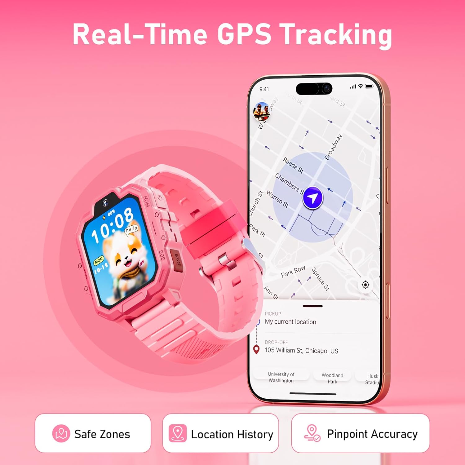 【Safety First】- Reliable SOS & Location Tracking: True peace of mind. The dedicated SOS button lets your child instantly call up to 3 preset numbers in an emergency (press & hold for 3 seconds). Real-time 4G/Wi-Fi/GPS/LBS tracking is significantly more accurate than older 2G watches. Save up to 20 contacts via the parent app.