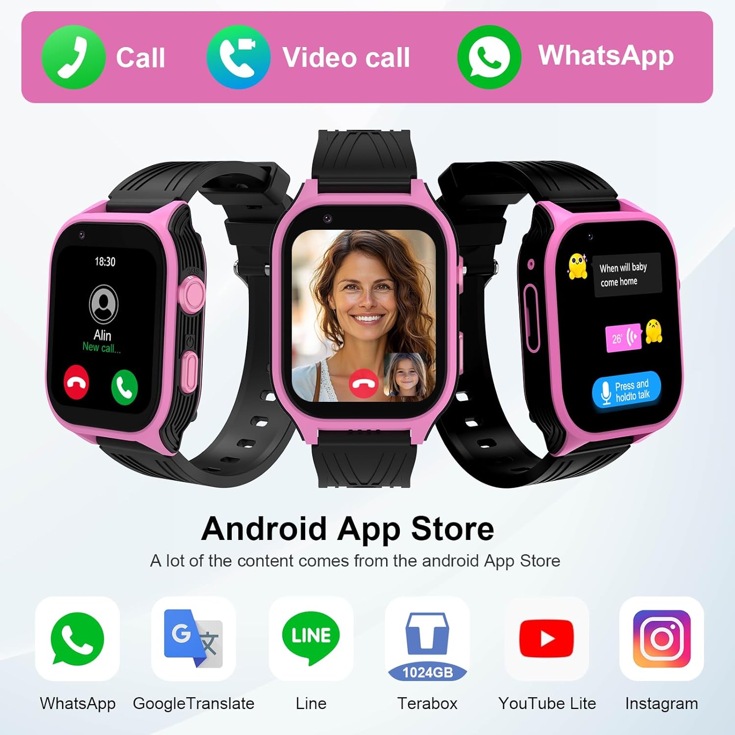 WhatsApp & Video Calling: This 4G LTE kids’ smartwatch with Android 8.1 supports WhatsApp that voice and video calls through WiFi or cellular data. the most expansive messaging experience in a kid’s smartwatch. Enjoy seamless Talk-to-Text, quick responses, voice recordings, emojis and group chats.
