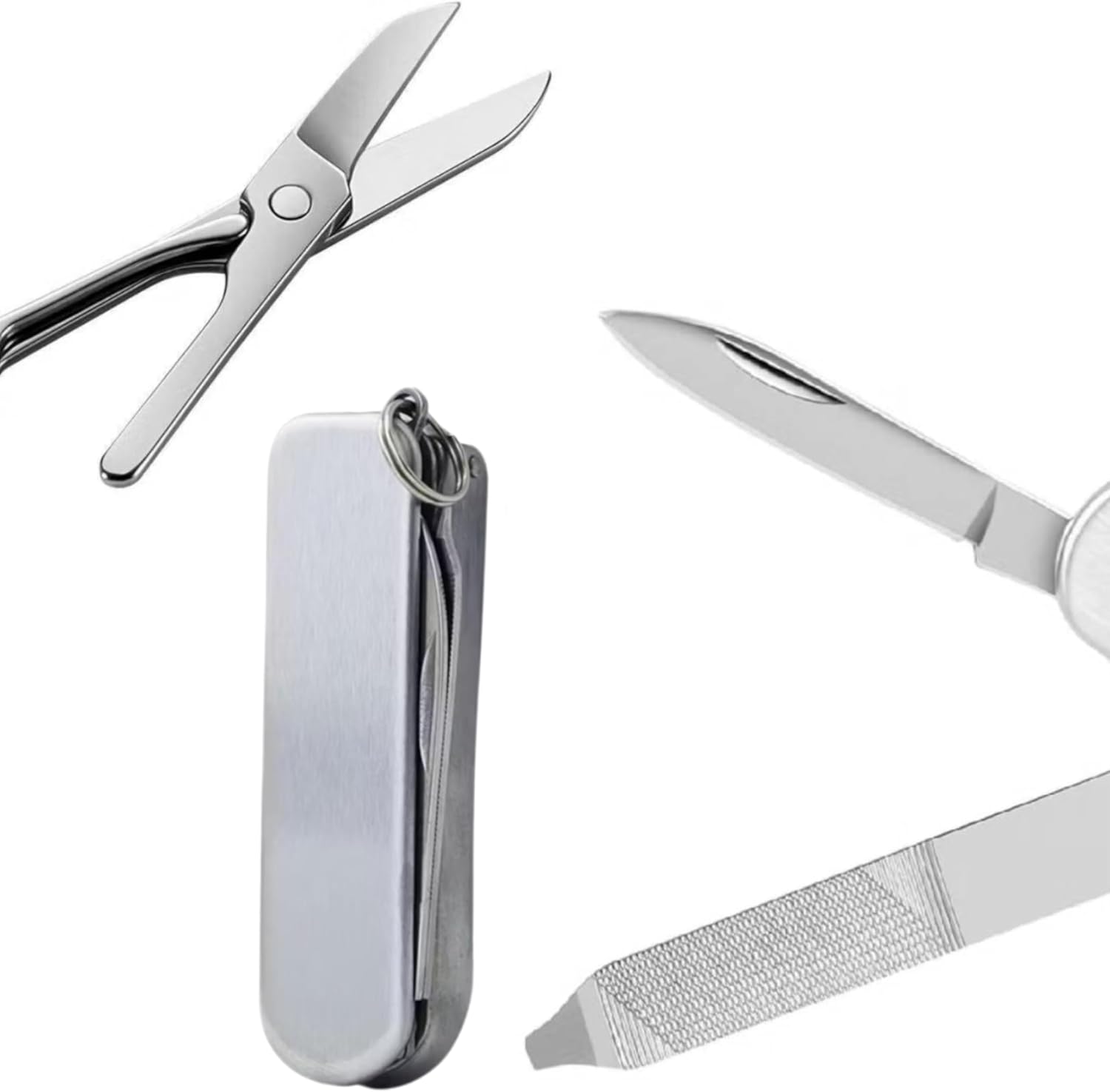 VERSATILITY: This keychain tool combines 5 essential functions into one compact design: screwdriver, nail clipper, nail file, blade and scissors.