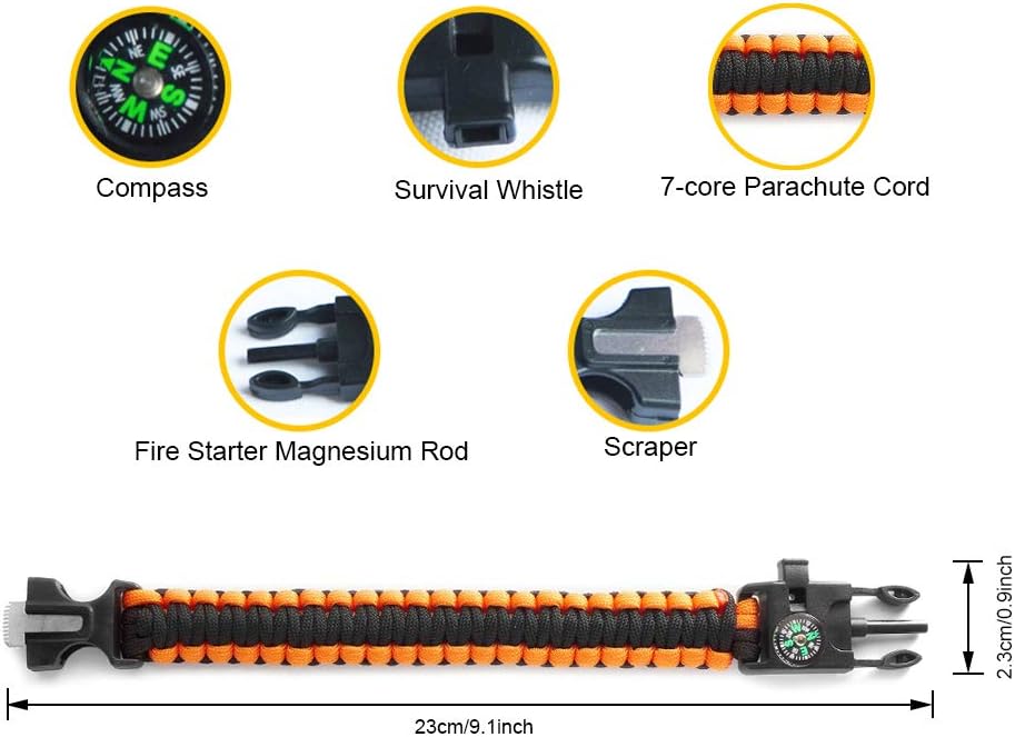 ☛ 5-IN-1 SURVIVAL EQUIPMENT – With Compass + Whistle + Fire Starter + Paracord + Flint Magnesium Rod. The Fire Starter can be used to start fire. Whistle: Used to signal the use of bracelet and compass, you will not get lost. With this Bracelet, you can always be prepared for all kinds of sports and outdoor adventures.
