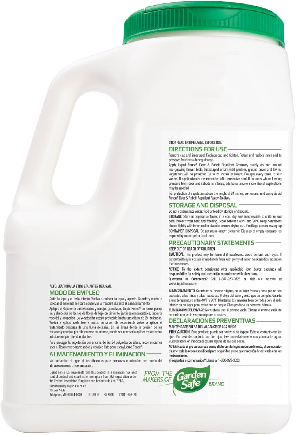 APPLY YEAR-ROUND: No need to rotate with other repellent brands – animals’ natural aversion to Liquid Fence Deer & Rabbit Repellent Granular2 will never diminish.