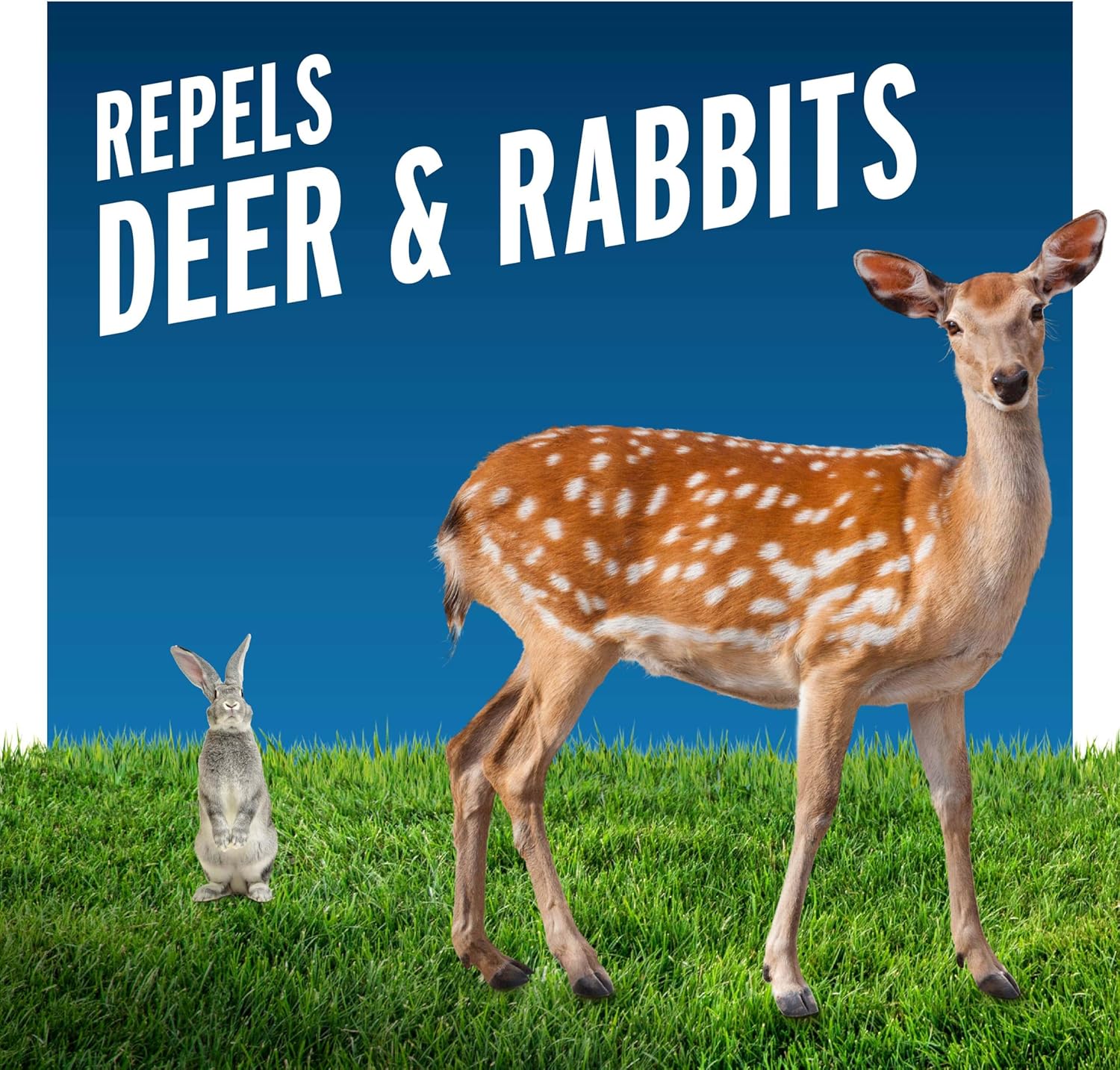 REPELS DEER AND RABBITS: Deer and rabbits don’t have to eat vegetation for the repellent to be effective—they have a natural aversion to the scent.