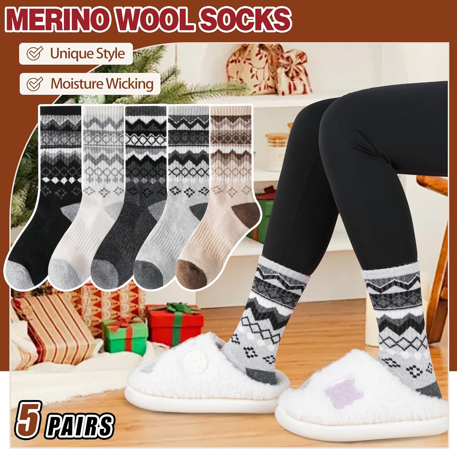 The video showcases the product in use.The video guides you through product setup.The video compares multiple products.The video shows the product being unpacked. Merino Wool Socks Merchant Video