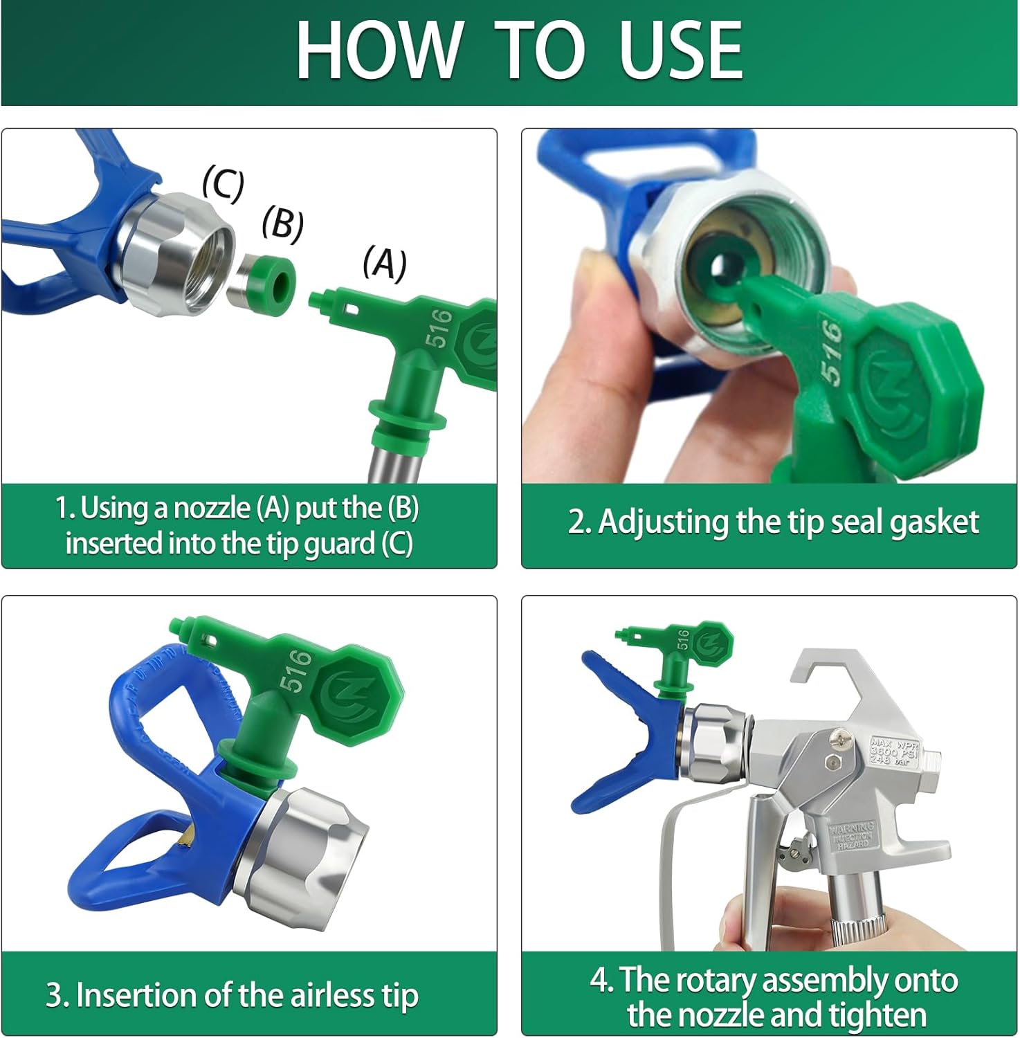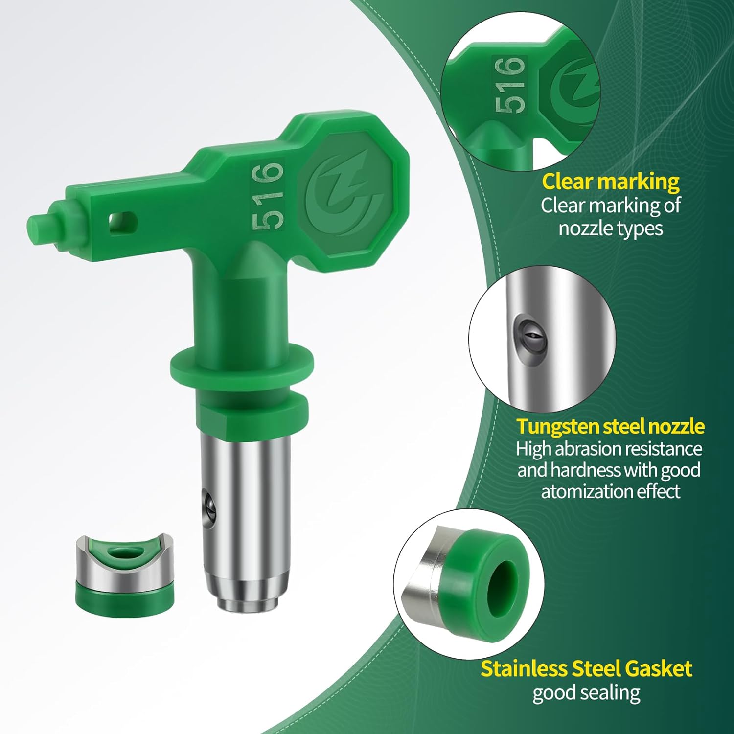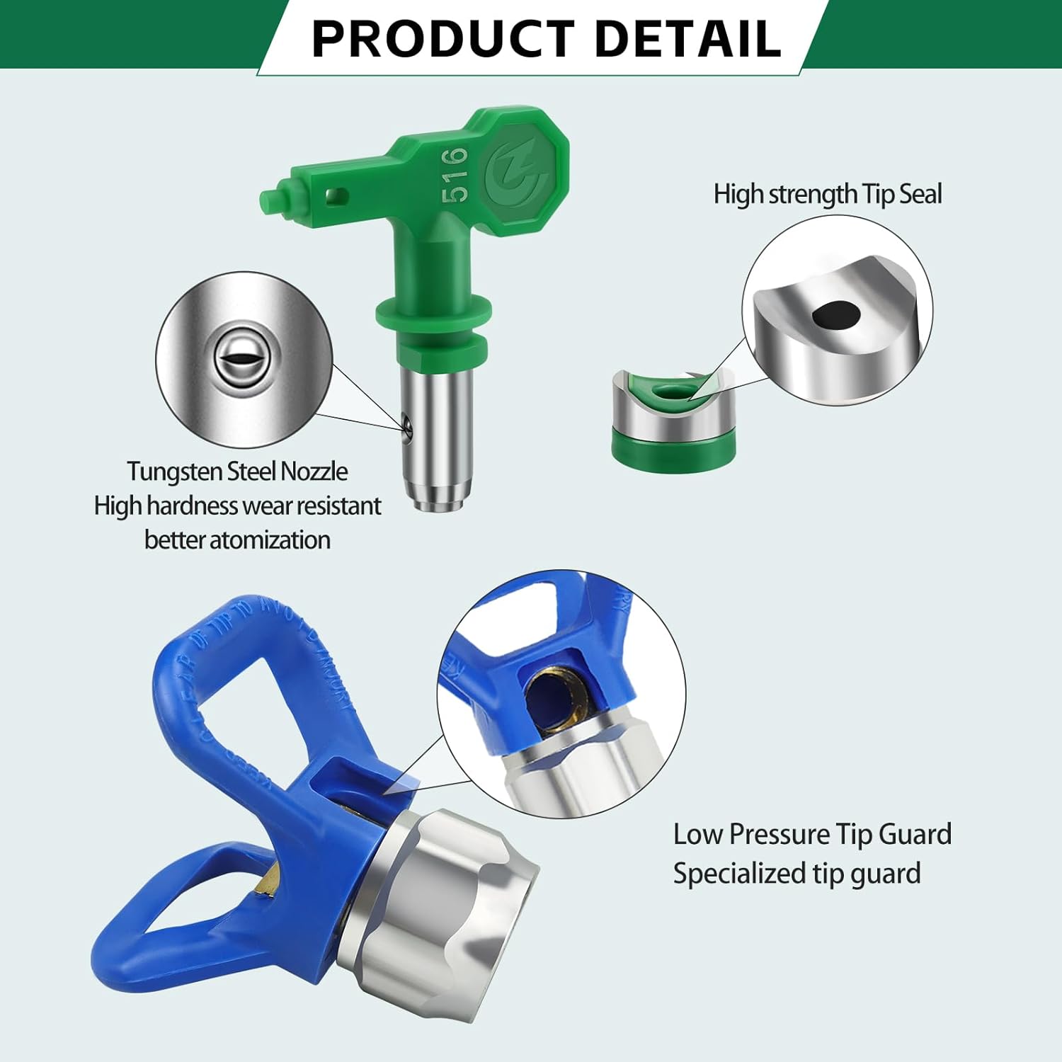 Low Pressure Tips Set: You will receive 5 pcs paint sprayer tips, 108, 212, 310, 412, 516 and 2 pcs tip guards. Please select a tip nozzle guard model that is compatible with the spray tip
