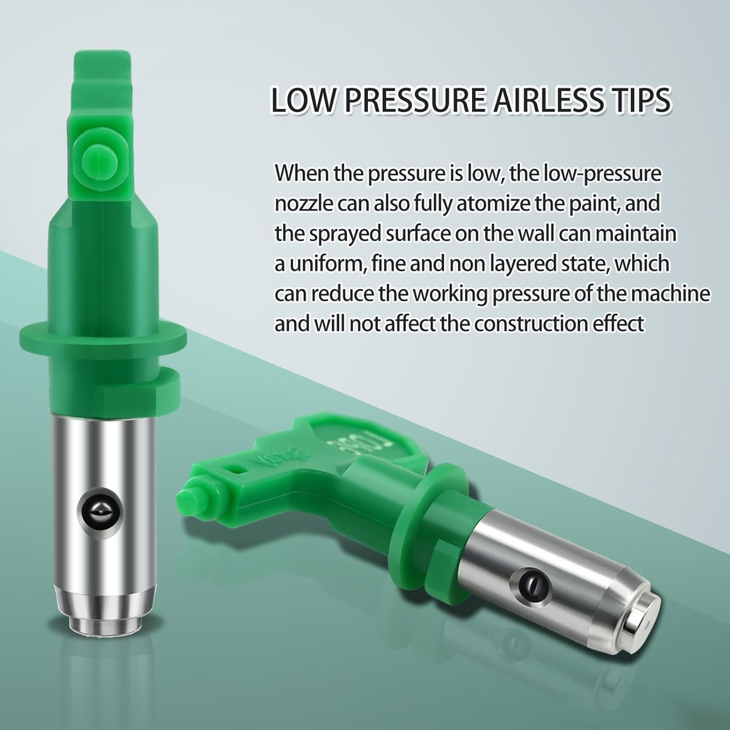 Spraying Effect: When the pressure is low, the spraying effect and spraying pattern of low-pressure nozzle is stable, the paint can be fully atomized, and the sprayed surface of the wall can be kept even, fine and non-layered. Can effectively save paint and time