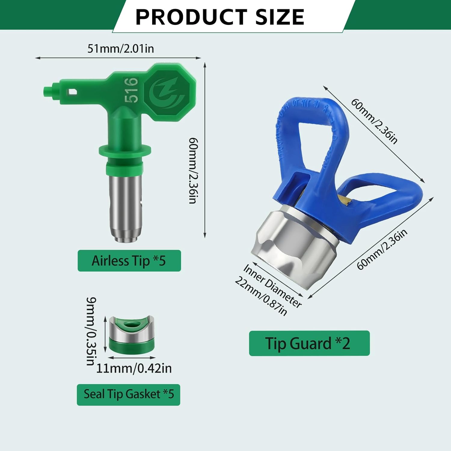 Low Pressure Tips Set: You will receive 5 pcs paint sprayer tips, 108, 212, 310, 412, 516 and 2 pcs tip guards. Please select a tip nozzle guard model that is compatible with the spray tip