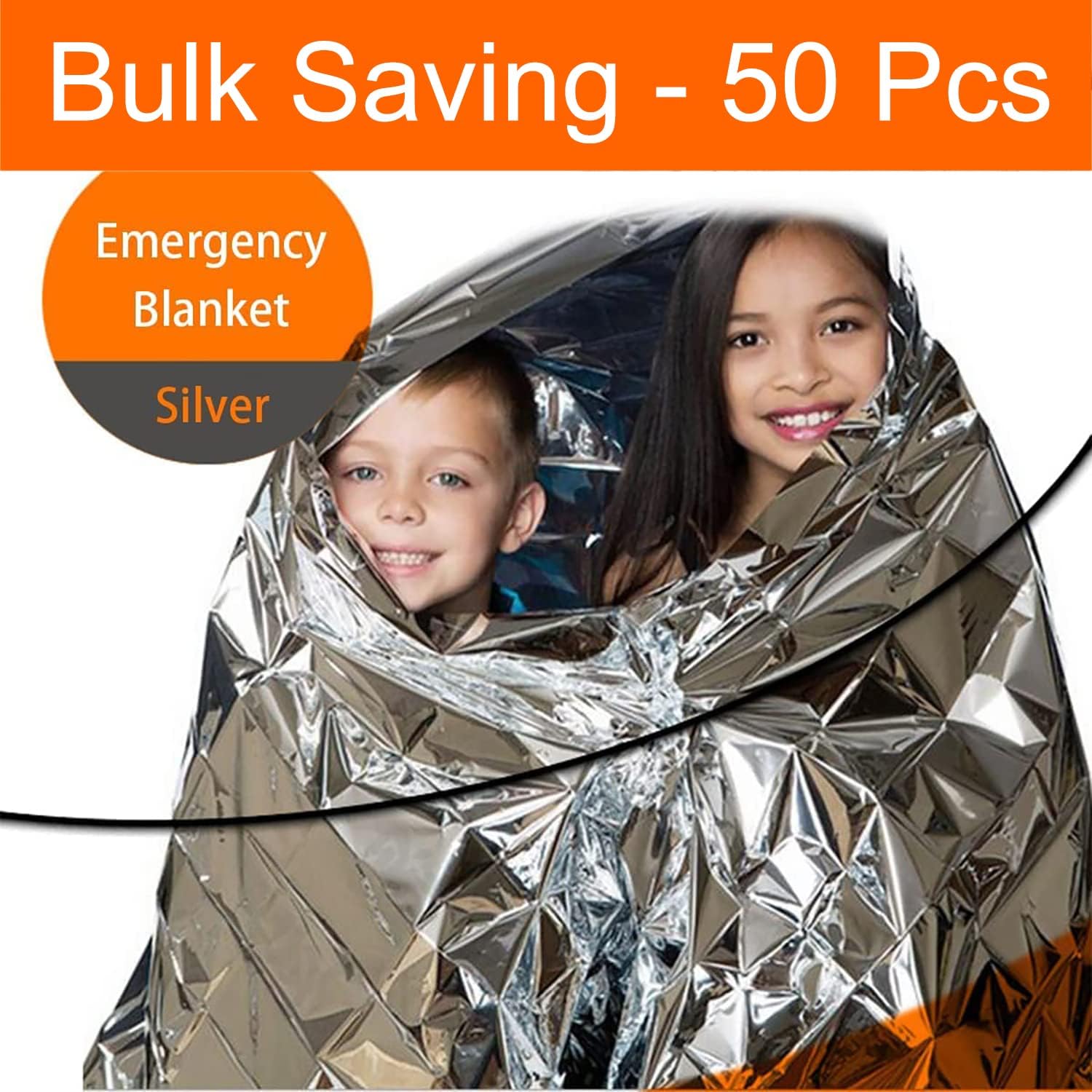 [50 high-quality fire blanket]:You can purchase a set of 50 high-quality emergency mylar thermal blanket at an unbeatable price. They are perfect for situations because they are lightweight and compact, and each blanket comes individually packaged in a resealable plastic bag