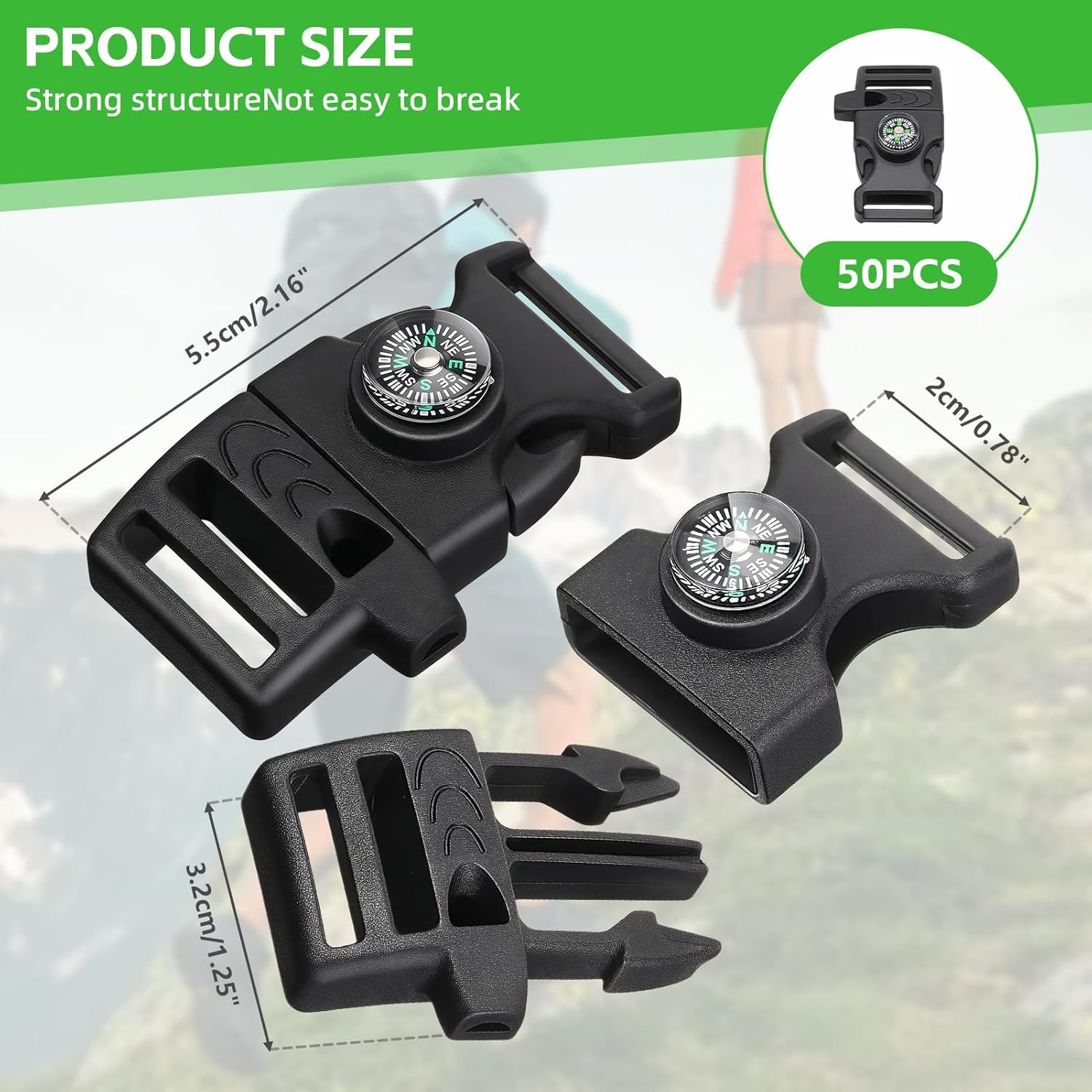 🥾 50 Pcs Compass Buckle Clips, 5/8 Inch Compass Buckles with Whistle Plastic Paracord Buckles for Bracelets, Survival Gear, Camping, Multi-Purpose Fasteners for Outdoor, Travel & DIY Crafts — Review, Key Features & Current Price