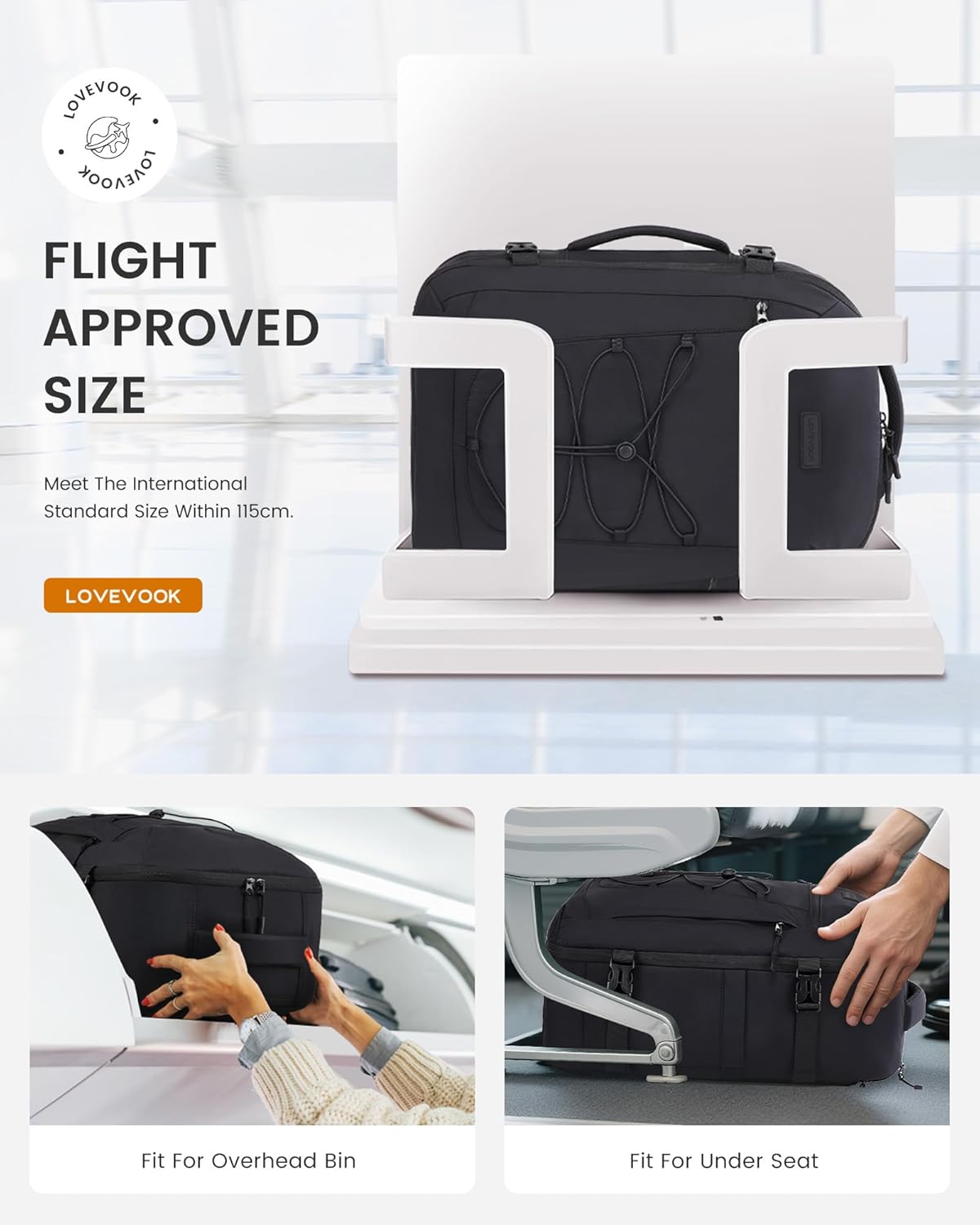 【50L Carry On Backpack】TSA-approved Suitcase Backpack (19.5x14x8”) fits overhead bins. Features a massive main compartment and 8 pockets for 3-5 days’ travel essentials, dedicated 17.3″ laptop sleeve with cushioning, and hidden anti-theft pocket. The 180° full opening speeds security checks.
