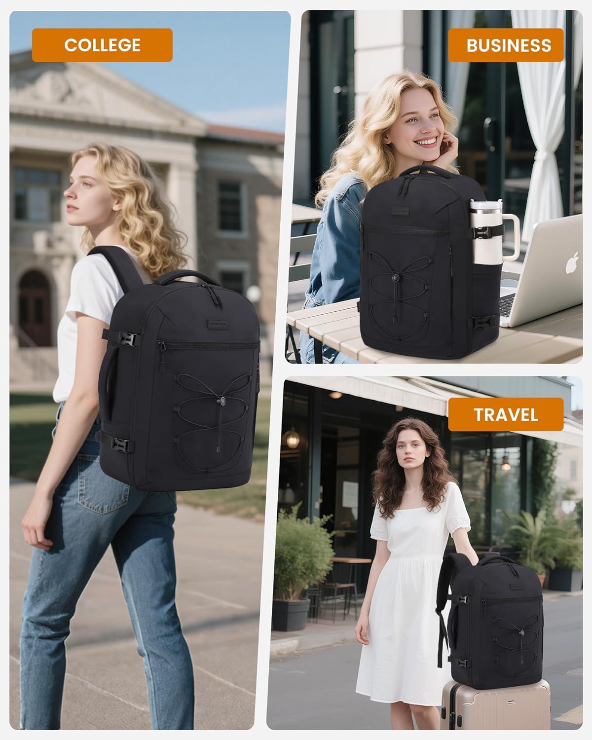 【Effortless Airport Bag】This travel backpack doubles as your personal item travel bag.Main compartment straps can be used to secure items. Suitcase strap securely attaches to luggage handles. Large capacity and lightweight portable, making it your travel essentials.