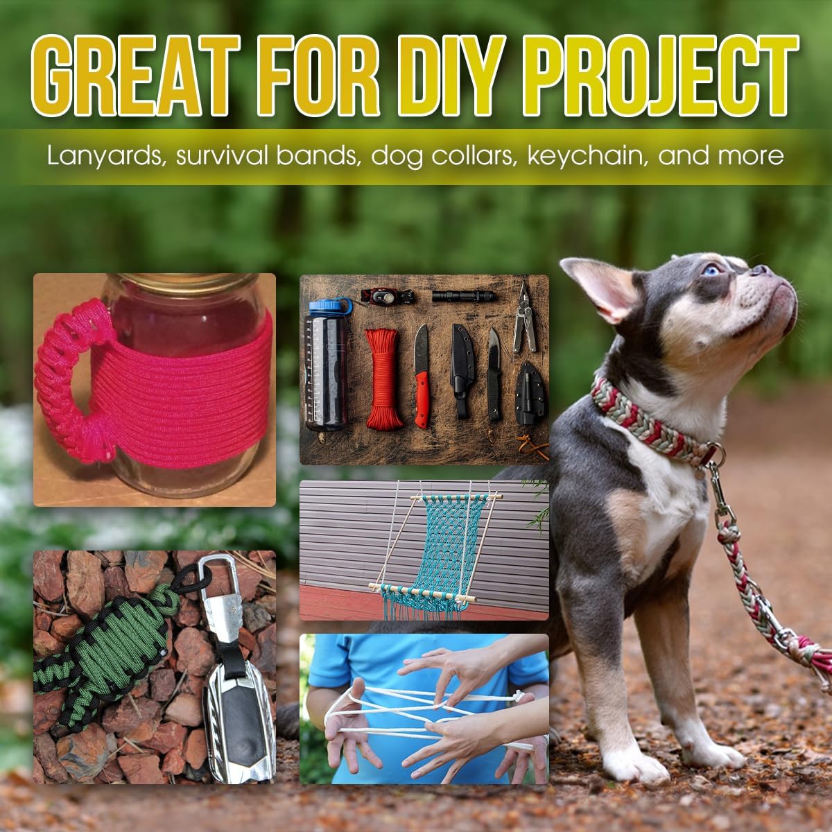 The video showcases the product in use.The video guides you through product setup.The video compares multiple products.The video shows the product being unpacked. 550 Paracord 98FT Rope for Camping, Survival, DIY Merchant Video