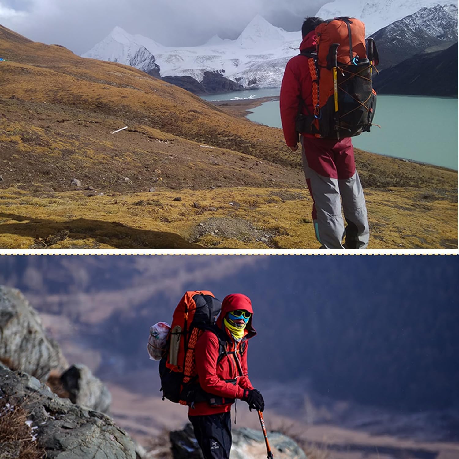 LARGE CAPACITY:This mountaineering rucksack is designed to carry your trekking pole and ice-axe. The regular version has a capacity of 40+16L while the PRO version has a capacity of 46+10L.The front cross elastic mesh allows for quick and easy attachment of clothing, hats, and other frequently accessed items. Size: 80*30*22cm/31.4*11.8*8.6inch.