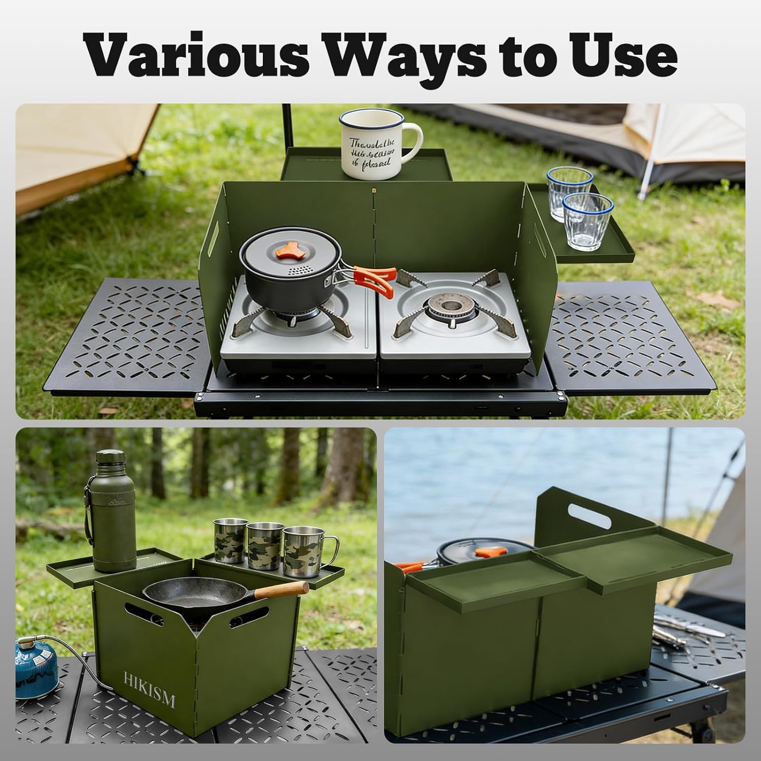 Foldable and Flexible Assembly: The four-piece steel plates can be arranged freely and equipped with removable cooking utensils shelves,which can be placed at the front or side as needed.