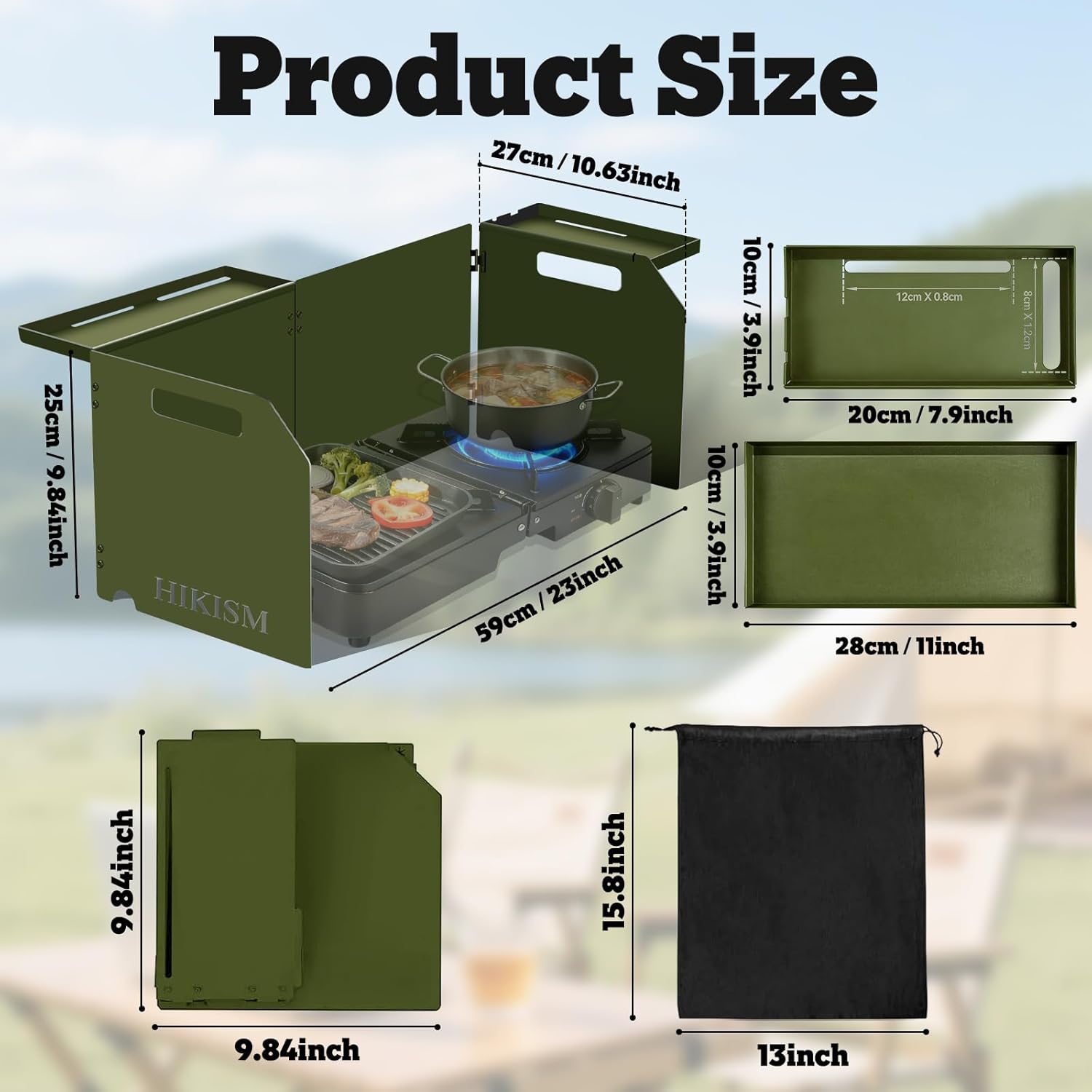 Enlarged 59cm/23inch For 2 Burners Camping Stove: this roomy Wind Screen, Unfold size is about 23 x 10 x 12 inches(LxHxW), is compatible with most dual-burner stoves.