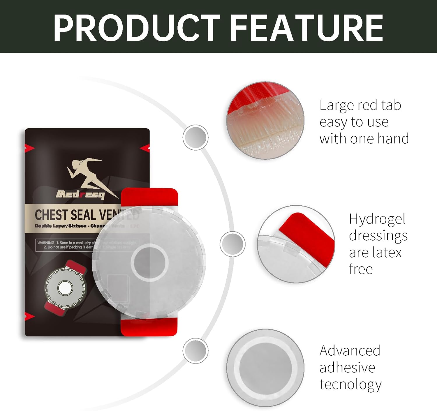 【VERSATILE APPLICATIONS】: Ideal for military training, combat, camping, adventures, emergency rescue, disaster prevention, and reserves. Tailored for open chest injuries, including gunshot wounds, stab wounds, or other penetrating chest traumas.