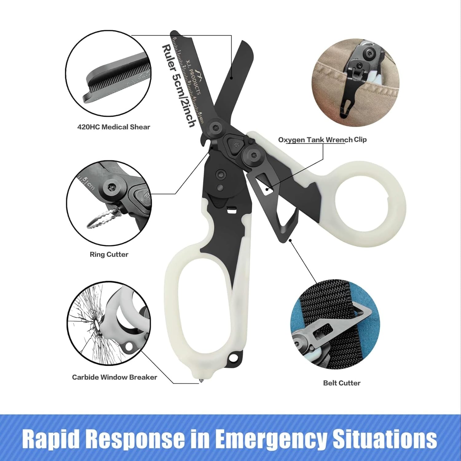 Strong & Rust-Resistant: The Emergency shears are made of high quality 420HC stainless steel, glass filled nylon & carbide which are durable not to rust or fade. It makes the professional trauma shears holster strong and rust resistant