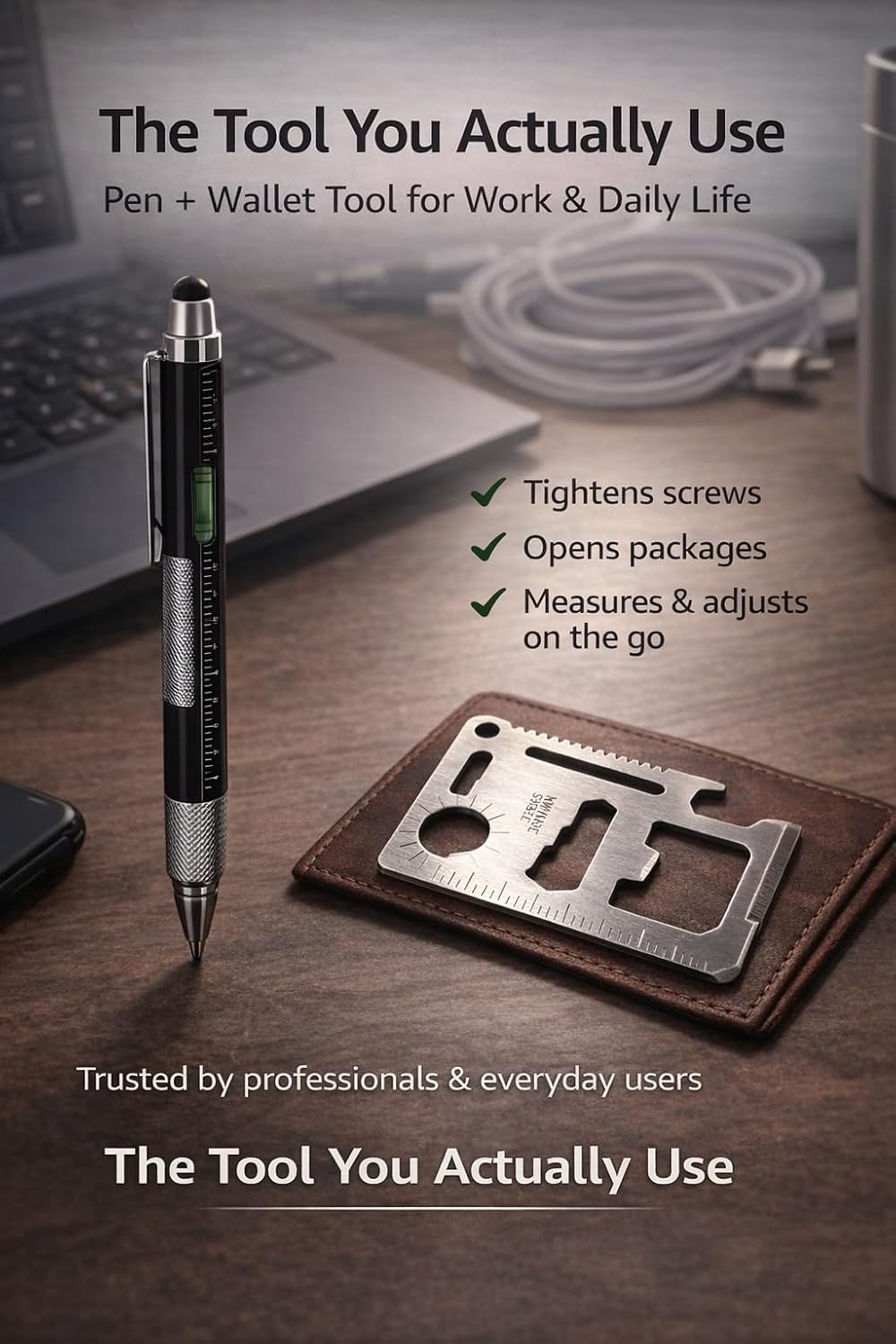 🔧EVERYDAY CARRY TOOL Set (2-Pack) A practical EDC combination featuring a multitool pen and stainless steel wallet card tool. Designed for daily use at work, home, or on the go—without carrying bulky tools.