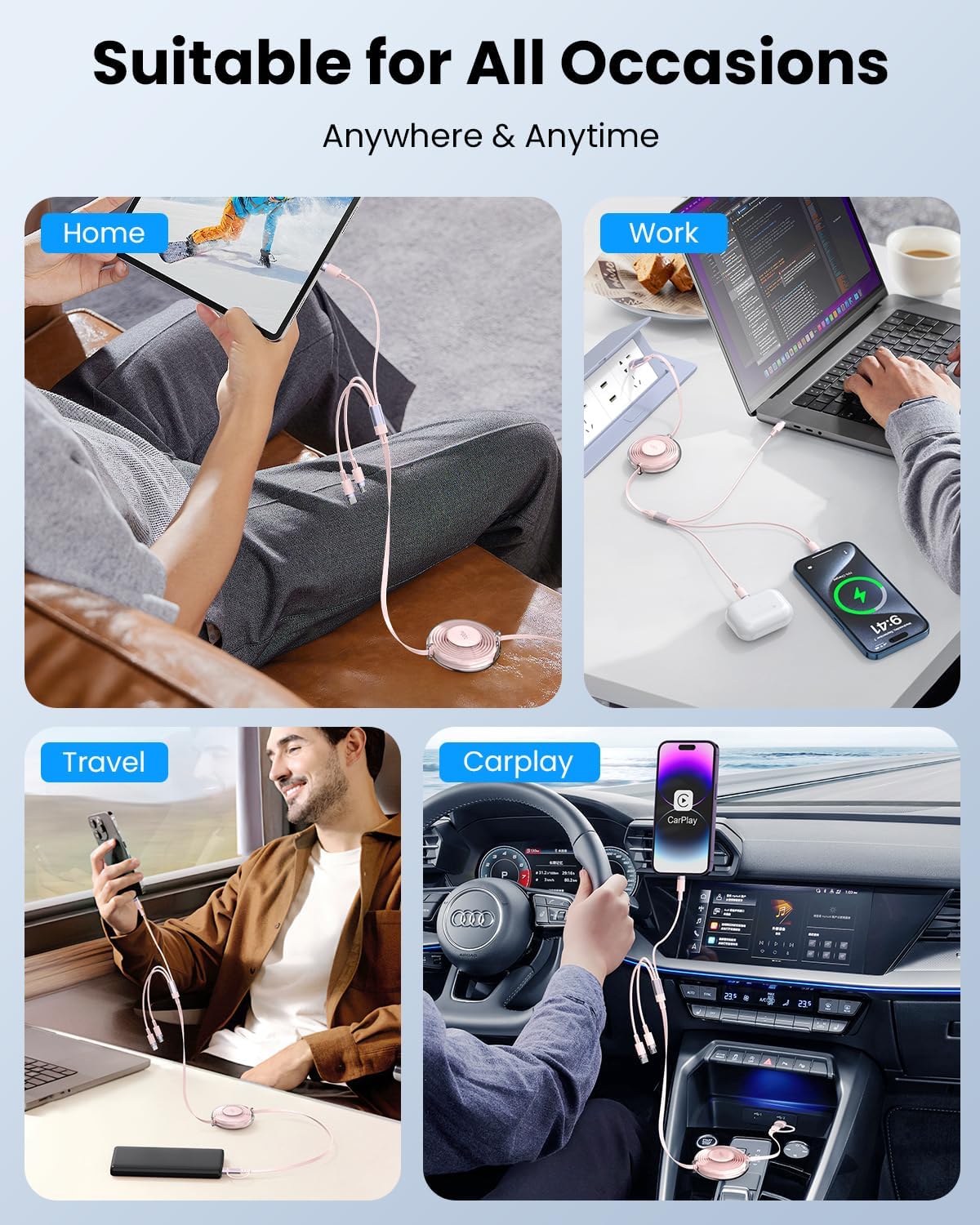 【Universal Compatibility – Works with Almost All Your Devices!】Simplify your life with one cable that works with everything! Compatible with USB-C devices like iPhone 15/16 Pro Max, iPad Pro/Air/Mini, Samsung Galaxy S23/Z Fold 5/Flip 5, Google Pixel 8, and OnePlus 11; Lightning devices like iPhone 14/13/12/11, iPad Mini, and AirPods; and Micro USB devices like Samsung Galaxy S5/S6, Redmi Note 4/5, and LG G4. No matter what you own, this cable has you covered!