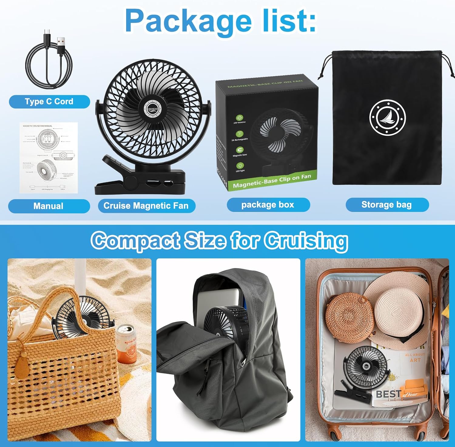 Compact & Travel-Friendly: Lightweight and easy to carry, this fan’s compact size won’t take up much space in your luggage. A must-have for any cruise, ensuring a cool, refreshing environment wherever you go.
