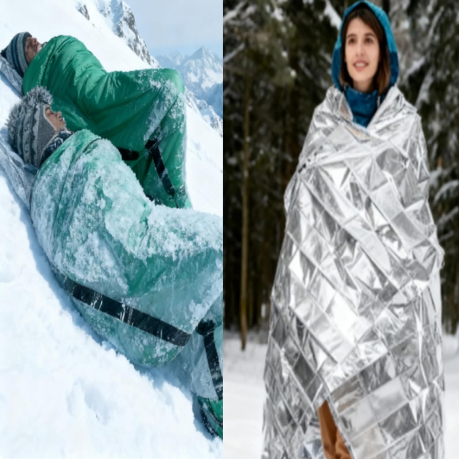 Quality Materials: the sleeping bags are made of PE with aluminum coating, offering thermal insulation and durability; Storage bags are polyester for weather resistance; Thermal blankets are PET material with windproof and waterproof functions